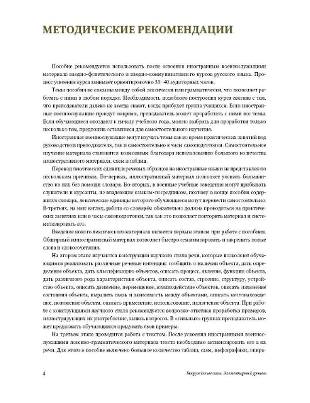 Пособие по языку специальности предназначено для работы с иностранными военнослужащими, обучающимися на подготовительном курсе. Пособие рекомендуется использовать после освоения вводно-коммуникативного или вводно-фонетического курса.