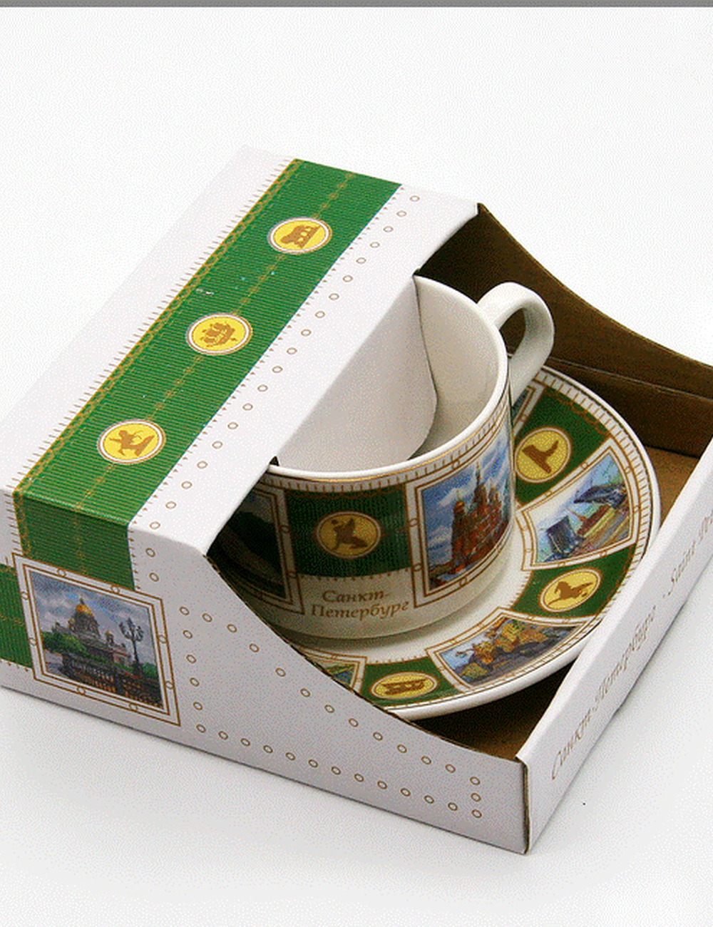 Тип упаковки : Индивидуальная коробка из картонаТехническая характеристика : керамика, декольРазмеры кружкивысота- 6 смРазмеры блюдцадиаметр- 14 см