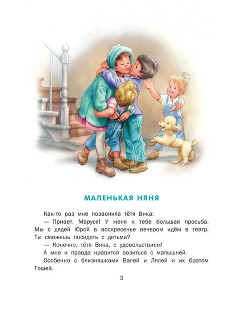 В книгу "Маруся — любимая сестричка" вошли две истории про эту замечательную девочку. В первой истории Маруся — маленькая няня своих племянников-близняшек и их брата. За малышами глаз да глаз: нужно быть очень внимательной. Но с ними так весело читать книжки, собирать пазлы и разговаривать обо всём. А во второй истории старший брат Маруси её обидел, и они поссорились. Стоит ли эта обида того, чтобы не разговаривать с любимым братом, даже если он иногда вредничает? В этой истории Маруся и сама понимает важную вещь — ведь она тоже иногда бывает врединой и задирает брата.