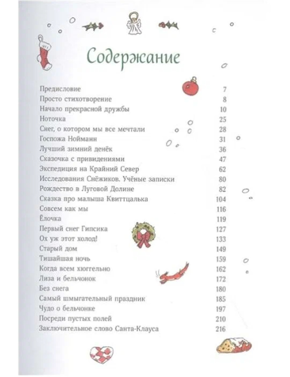 В книге 24 истории, и каждая так или иначе рассказывает о Рождестве и подготовке к нему. На страницах оживает атмосфера зимних праздников в Европе. В одном рассказе упоминается Рождественская кантата Баха и даже приведен ее перевод на русский. Если начать читать книгу за 24 дня до Нового года, посвящая каждый вечер одной истории, можно вместе с героями приблизиться к празднику, успеть обсудить праздничные традиции разных стран и даже повторить некоторые из них.