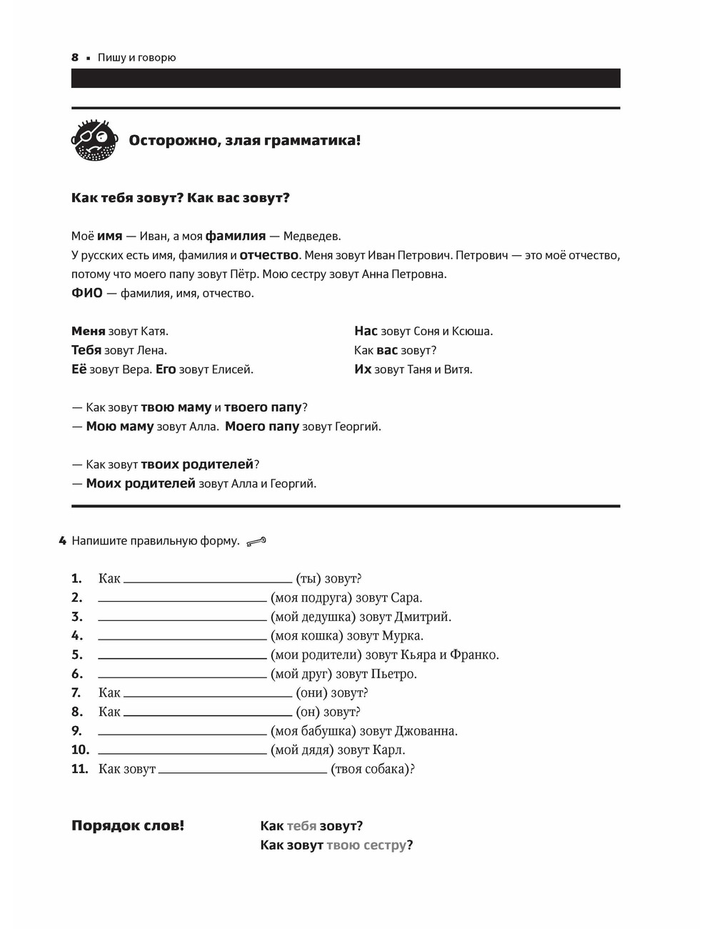 Учебное пособие адресовано студентам, изучающим русский язык как иностранный на начальном этапе. Предполагаемый стартовый уровень — не ниже пред-А1 (40+ часов изучения русского языка).