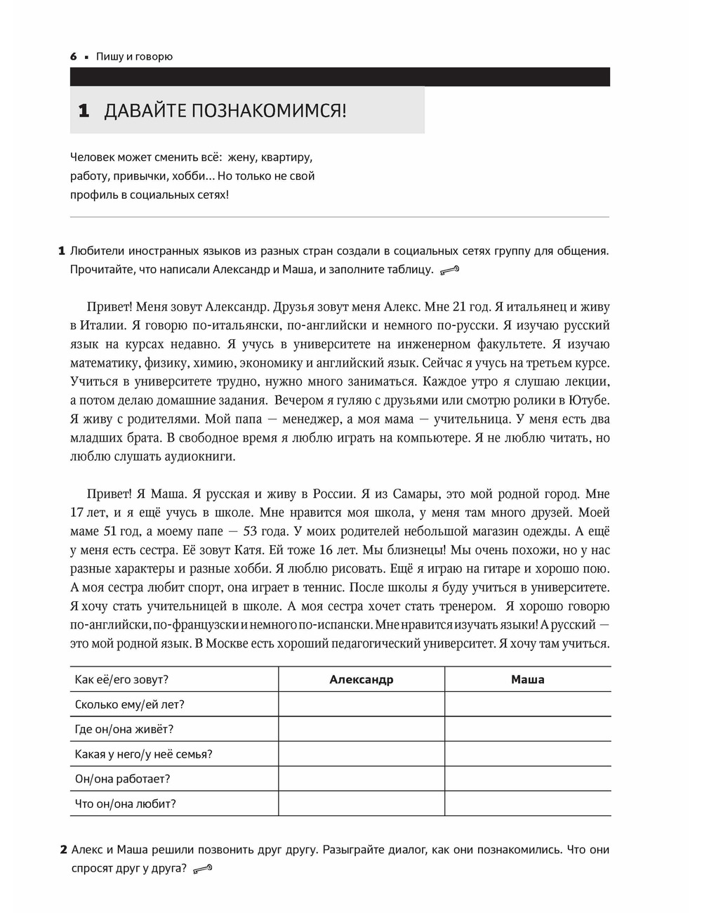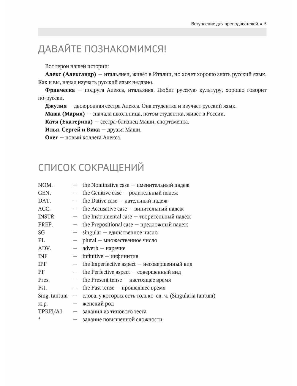 В пособие включены все традиционные разговорные темы (рассказ о себе, семья, работа, мой день и пр.). Лексический и грамматический уровень слегка превышает требования ТРКИ к уровню А1, что позволяет педагогу не искать дополнительный материал для более подготовленных учащихся. На уровне А1/А2 обучающиеся могут повторить и систематизировать изученный материал, активизировать словарный запас, ввести в речь лексику и конструкции в рамках предложенных тем.