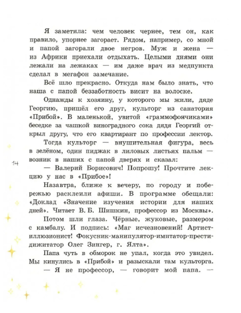 Лена Шишкина всегда стоит последняя на физкультуре, хочет стать маляром, а еще больше - конюхом в цирке, любит всех на свете зверей (и даже мышей не боится - может, совсем чуть-чуть), играет на тарелках, знает вкус торосов Карского моря и одно слово по-латышски. Где бы она ни была - на Рижском взморье, на Тверской улице в Москве, в деревне или в поезде, - ее всюду сопровождает удача; и сразу верится, что это мир так отзывается на добро и искренность. Рассказы и повесть проиллюстрировала Анна Пермякова. Для детей 8-12 лет.
