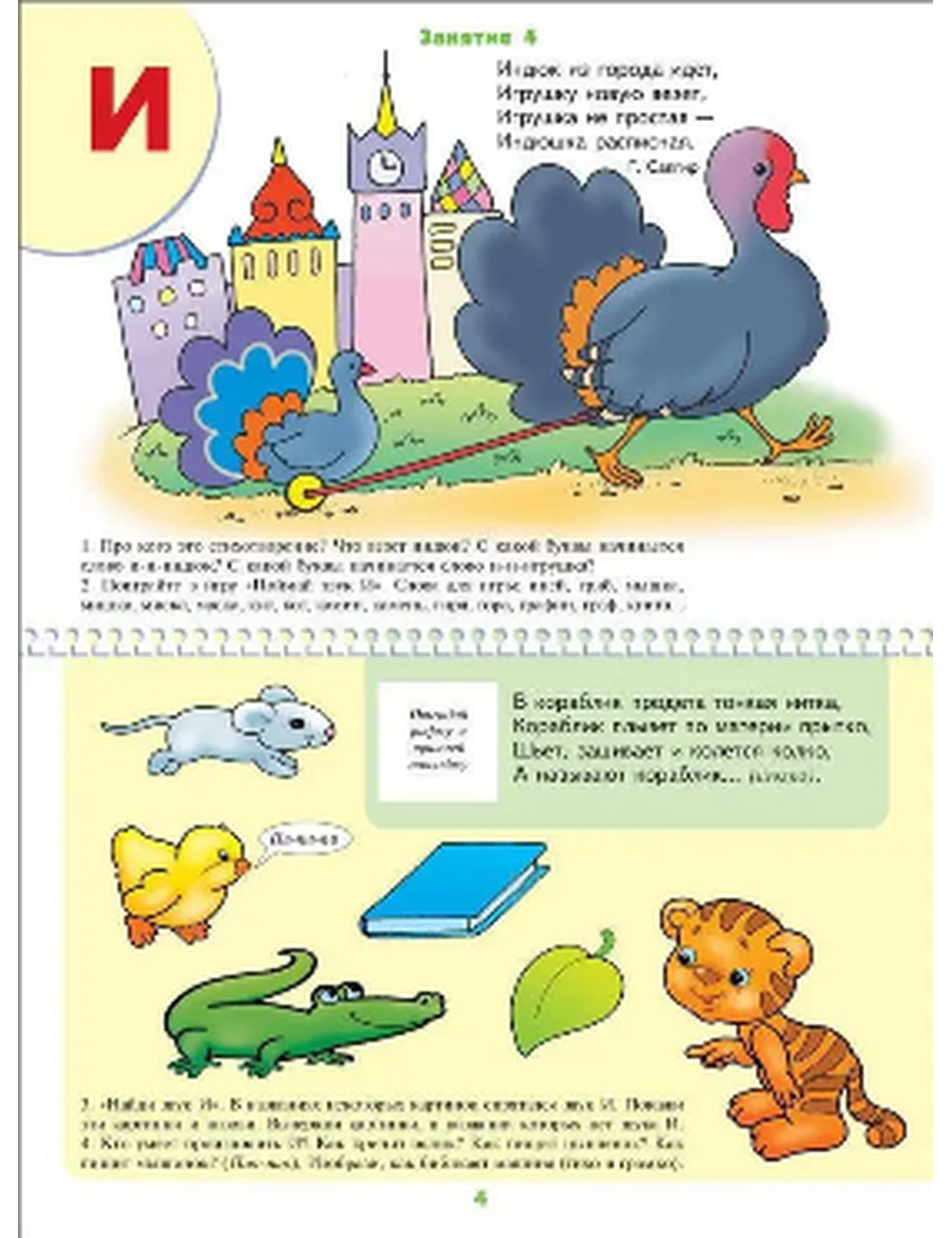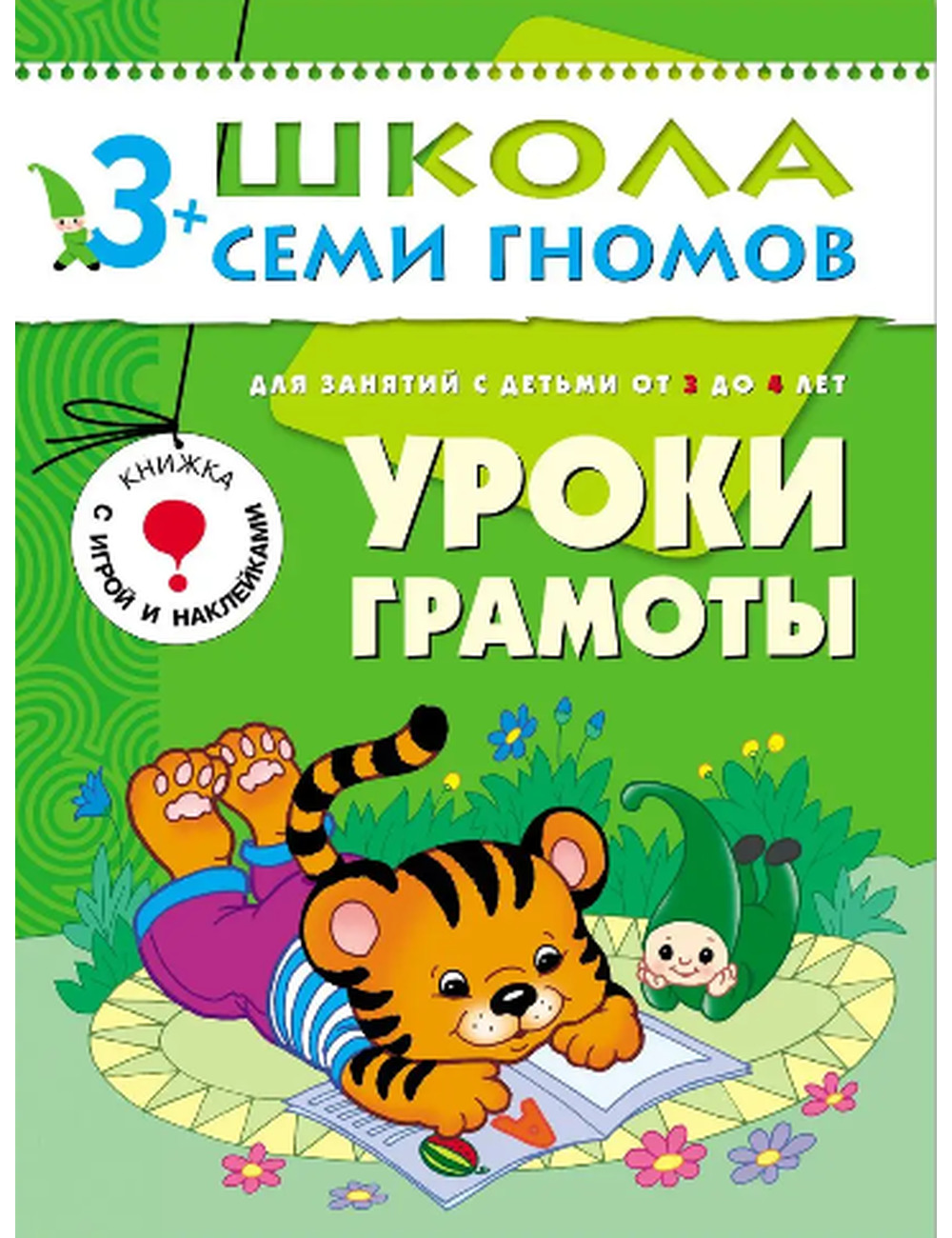 Уроки грамоты Книжки серии Школа семи гномов знают, любят и используют в развитии своих малышей многие родители. Развивать ребенка нужно с самого рождения считают психологи и педагоги - авторы пособий издательства Мозаика-Синтез. Четвертый блок развивающих книжек предназначен для малышей от 3 до 4 лет. У книг этой серии зеленые обложки. Для малышей от 3 лет до 4 лет издательством выпущено 12 книжек. В каждой - разнообразные задания на какую-то одну тему, великолепная вкладка-дидактический материал внутри, подробные рекомендации по работе с пособием для родителей. Все книги очень качественные, яркие. Обложка глянцевая, книгу приятно взять в руки и предложить ребенку. Книга Уроки грамоты развивающей серии Школа семи гномов обогатит словарный запас ребенка 3-4 лет, разовьет у него фонетический слух, то есть умение слышать слово, из каких букв и слогов оно состоит, на каком слоге ударение. Всего в книге 16 занятий, 16 букв (А, О, У, И, Ы, Э, М, Н, Б, П, Т, Д, Г, К, В, Ф). На каждой странице книги рассматривается одна буква, начиная с гласных. На каждую букву дается стихотворение, загадки и упражнения на узнавание буквы и звука. Занимаясь с ребенком по этой книжке, не нужно торопиться и проходить за один раз больше одного занятия, лучше добавить устных заданий и игр. С ее помощью процесс формирования у ребенка грамматического строя речи пройдет правильно и легко. Трехлетний малыш – вечный почемучка. На четвртом году жизни продолжается интенсивное развитие психической сферы, подвижности, памяти, речи, совершенствуется ходьба и другие моторные навыки. В возрасте 3-4 лет ребенок постепенно выходит за пределы семейного круга, познает окружающий мир, заводит первые знакомства, находит друзей, при этом впитывая все как губка. Стремление к самостоятельности и возросшая потребность в общении, характерные для этого возраста, создают великолепные предпосылки для интенсивного обучения и развития ребенка. Занятия от трех лет направлены на дальнейшее развитие психомоторной, сенсорной, мыслительной, речевой и других сфер, соответствуют занятиям в младшей группе в детском саду.Школа 7 гномов - система домашнего обучения для мальчиков и девочек от рождения до школы, соответствует ФГОС для раннего воспитания и развития малышей. 7 лет - семь цветов радуги. Каждому возрасту соответствует свой цвет, яркие иллюстрации, гномик и развивающие интересные задания. Обучающие материалы разработаны в соответствии с современными образовательными стандартами и будут полезны как родителям, так и воспитателям. Созданы командой детских педагогов и психологов для гармоничного всестороннего развития дошколят. Для дополнительного развития интеллекта речи мышления чтения по слогам счета формы мелкой моторики меры величины логики внимания творческих способностей расширения кругозора знакомства с окружающим миром разработаны серии Мастерская и Активити с наклейками. Для закрепления знаний есть игра с фишками картинками (на одном поле множество игр, есть инструкиця). Издательство так же предлагает для самостоятельного изучения дома с ребенком книжки, которые станут настоящими помощниками для будущих школьников и прекрасным подарком. Они позволят познакомиться с буквами, счетом, формой, величиной, математикой, помогут выучить новые слова, бегло читать, решать головоломки, 