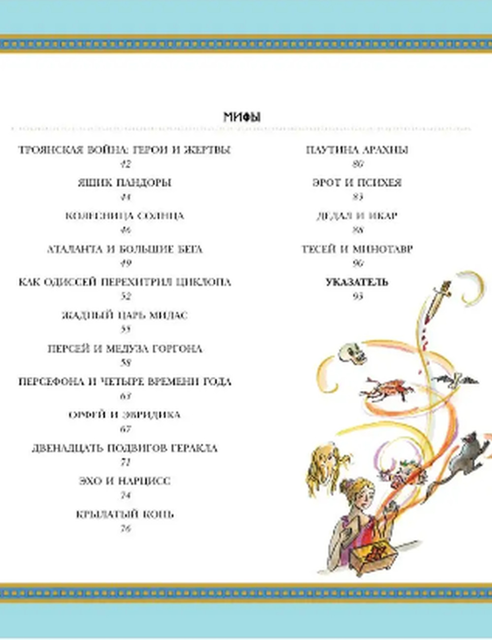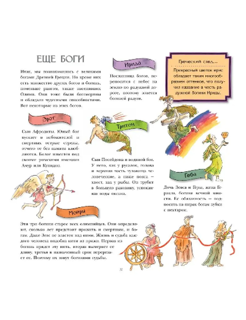 Юные читатели познакомятся с самыми известными мифами Древней Греции. Узнают о богах, живущих на горе Олимп, о необычных существах, сочетающих части тела человека и животного (сфинксах, сиренах, горгонах, кентаврах, гарпиях и т.д.) и о смелых хитрых и умных героях, совершающих удивительные подвиги. Рассказы сопровождаются веселыми иллюстрациями замечательной художницы Мэрэдит Хэмильтон. QR-коды позволят посмотреть анимационные ролики, связанные с героями книги.