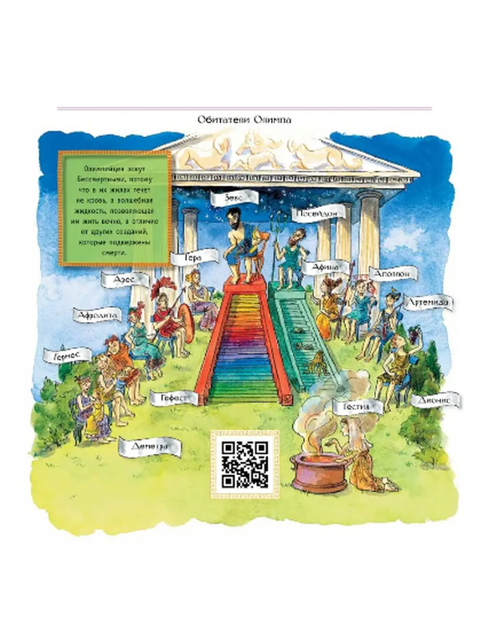 Наша энциклопедия откроет тебе дверь в прекрасный мир мифологии, расскажет (и даже покажет с помощью QR-кодов) о верованиях и культуре древних греков.