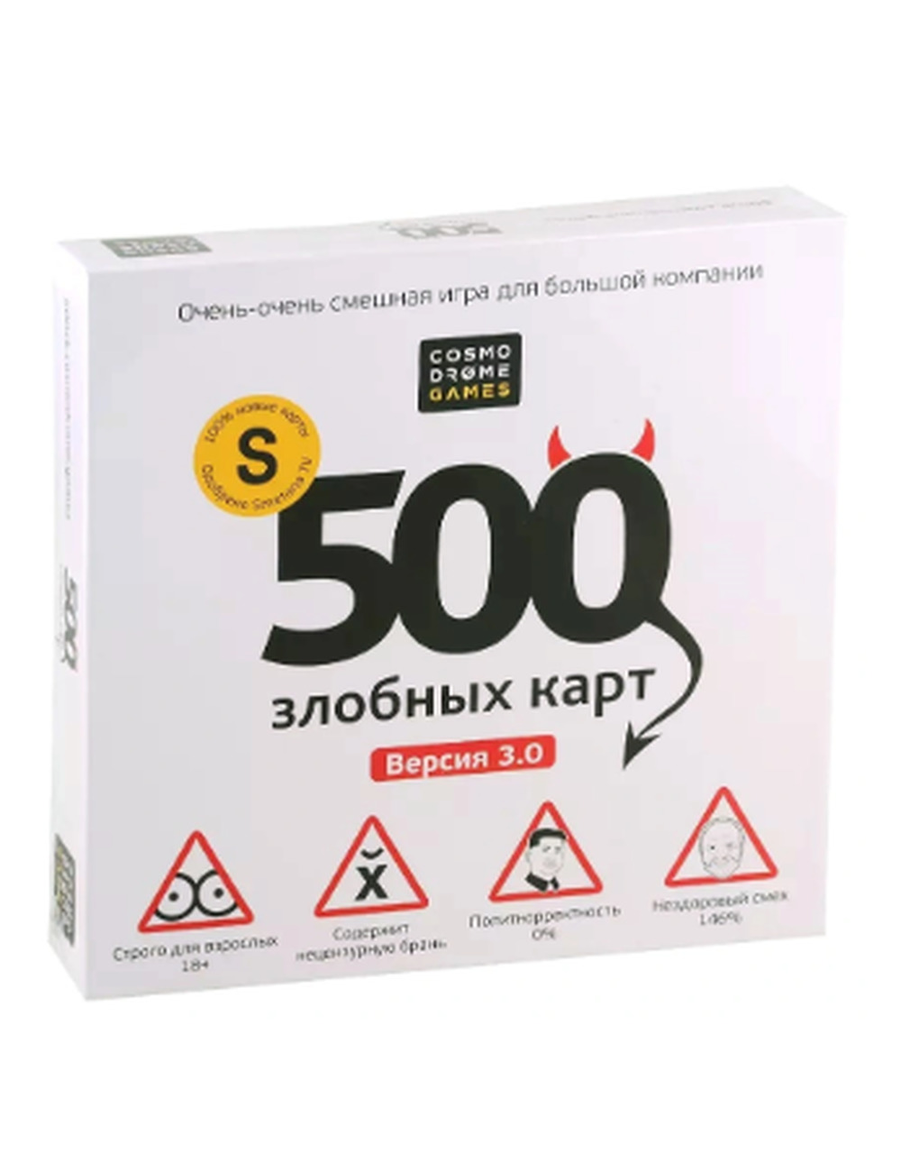 «500 злобных карт» — гарантия убойной вечеринки. В ней вам потребуется отбросить стыд и открыть свой потенциал настоящего юмориста. В игре мы собрали все самые свежие мемы, накалили градус циничности и добавили щепотку жгучего сарказма. Открывайте с осторожностью, предварительно убедившись, что вы старше 18 лет!
