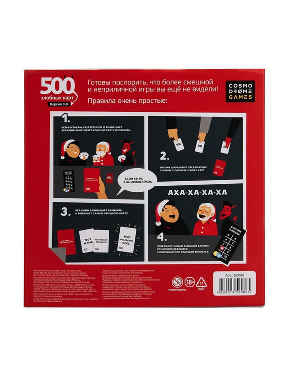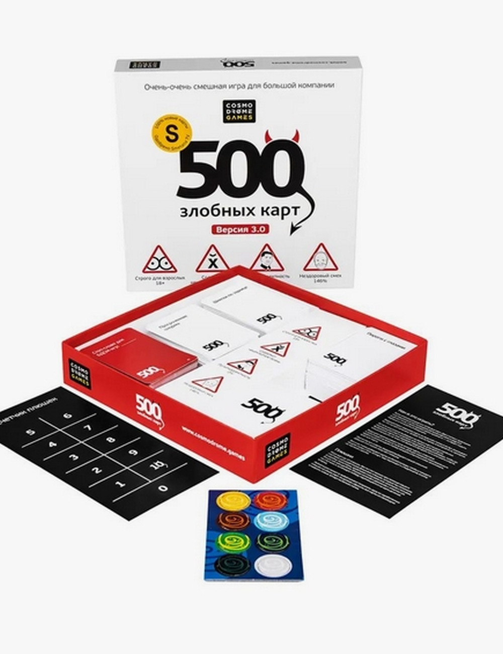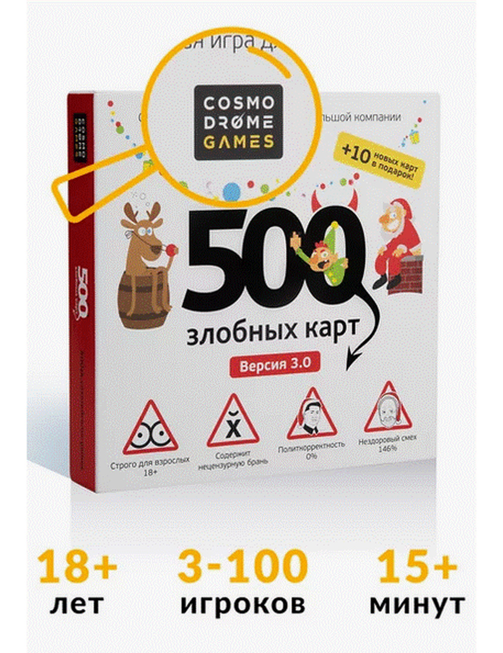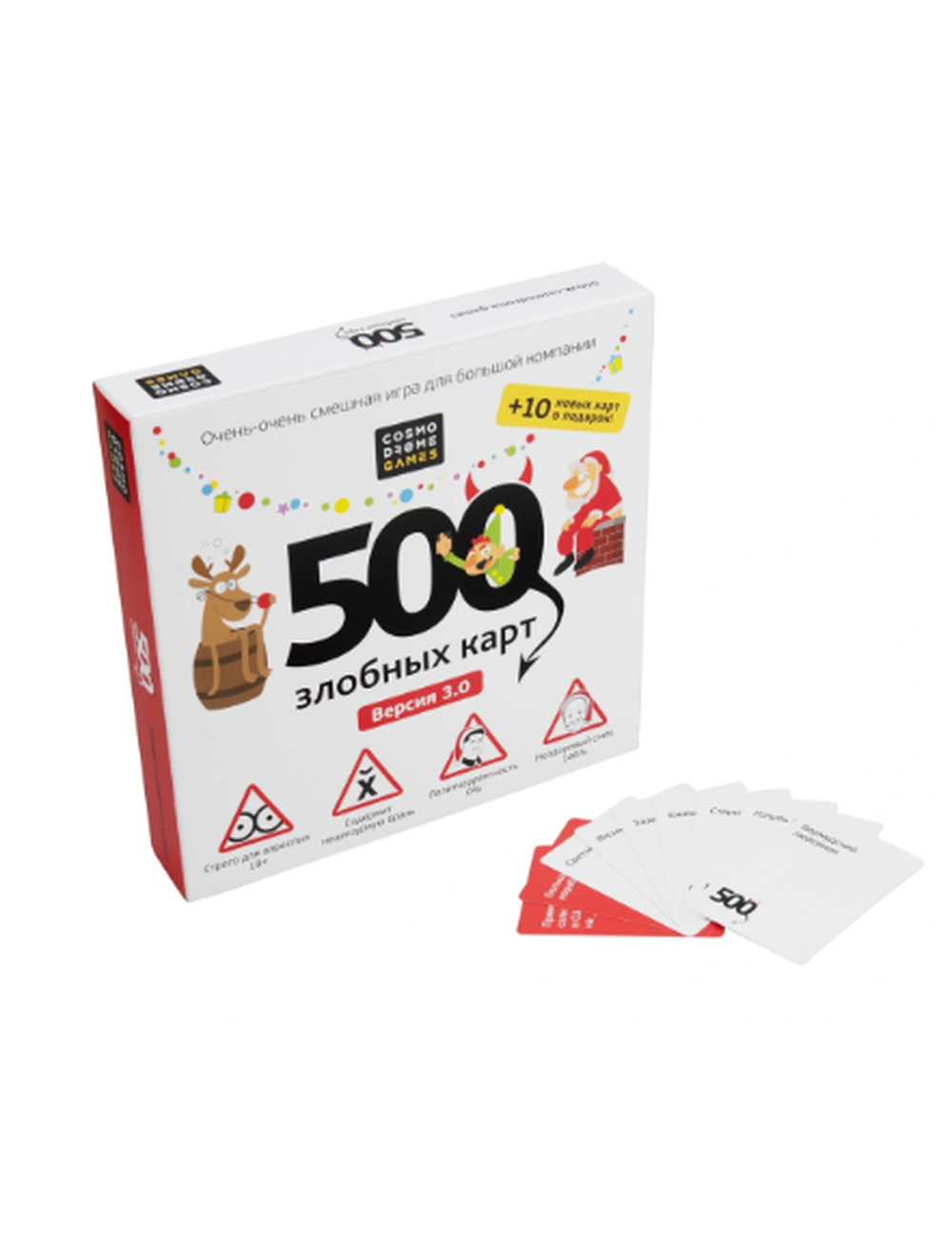 «500 злобных карт: А у нас Новый год!» — настольная игра, в которой побеждает чувство юмора. Теперь в новогоднем формате. У игры праздничное оформление, несколько новых карт и бесконечное количество шуток.
