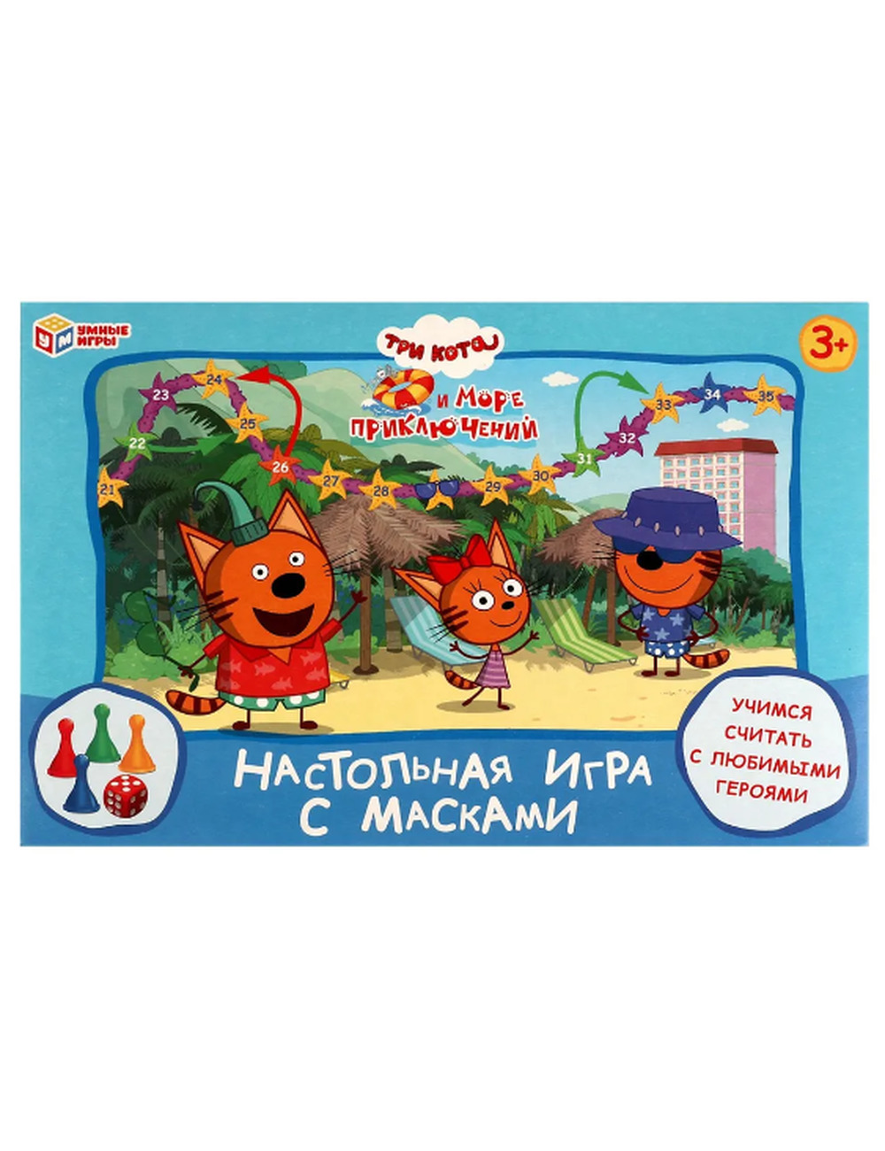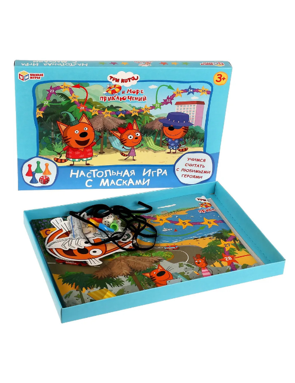 Настольная игра-ходилка с масками «Три кота и море приключений» ТМ «Умные игры» - занимательная игра, которая поможет весело провести время и потренировать счёт!