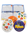 Цель игры находить один общий предмет на двух разных кругах. В состав игры входит 57 круглых карточек, на каждой из которых размещено 8 рисунков. При этом на двух любых карточках всегда есть только один общий рисунок. Авторами игры предлагается 6 разных игр, которые описаны в брошюре. Принцип в них одинаковый, нужно быстрее других находить одинаковые картинки на открытых карточках. Игра тренирует внимательность и скорость реакции. Она будет интересна и детям и взрослым. Карточки выполнены из достаточно плотного картона. Такая игра в яркой красивой упаковке будет отличным подарком ребенку на любой праздник.