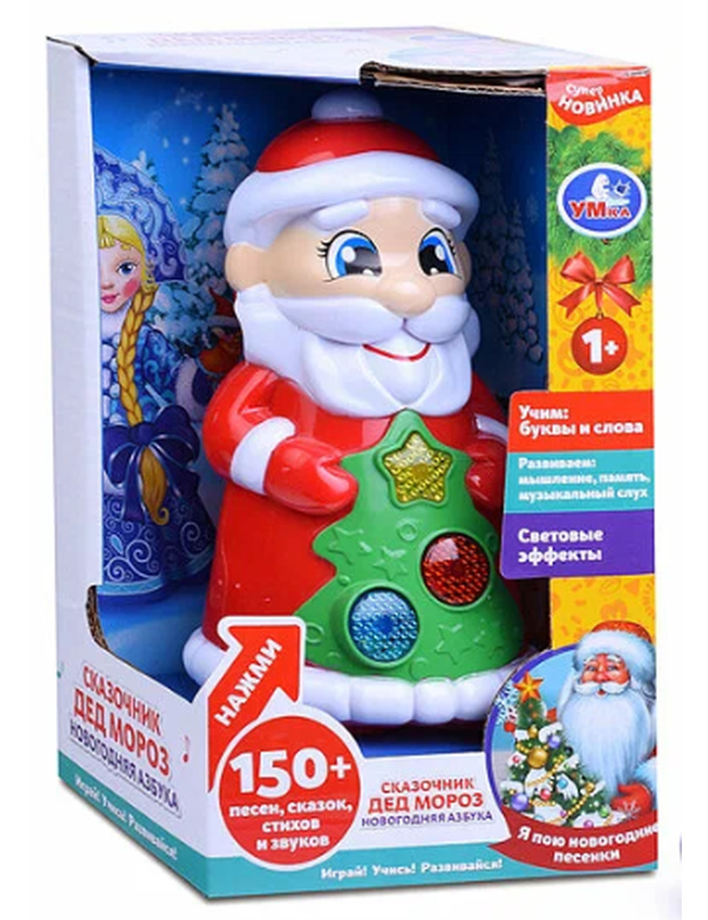 Развивающая игрушка «Сказочник дед Мороз. Новогодняя сказка» ТМ «УМка» станет прекрасным подарком для ребёнка: - 15 песен из м/ф (фрагменты): «Песня деда Мороза», «Песня о снежинке», «Зима», «Хорошо, что снежок пошёл», «В лесу родилась ёлочка», «Кабы не было зимы», «Что такое новый год», «Расскажи, Снегурочка», «Три белых коня», «Почему медведь спит зимой?», «Белые снежинки», «Что под ёлкой спрятано?», «Песенка Умки», «Песня о снежинке», «Ёлочка» - 3 русские народные сказки: «Морозко», «Мороз и заяц», «Снегурочка» - 5 загадок - новогодняя азбука в стихах - световые эффекты Вашего малыша приведёт в восторг эта игрушка в виде деда Мороза с тремя крупными кнопками разной формы. Он с удовольствием будет нажимать на эти кнопки и слушать весёлые песенки из любимых мультфильмов и замечательные народные сказки. Наличие световых эффектов сделает игру с дедом Морозом ещё интереснее. Музыкальная игрушка ТМ «УМка» способствует развитию: - слухового восприятия и музыкального слуха - тактильных навыков - визуального восприятия - логического мышления - мелкой моторики Размер: 10 х 18 х 9 см. Материалы: пластмасса. Работает от 3-х батареек типа ААА (в комплекте). Рекомендовано детям от 1 года.