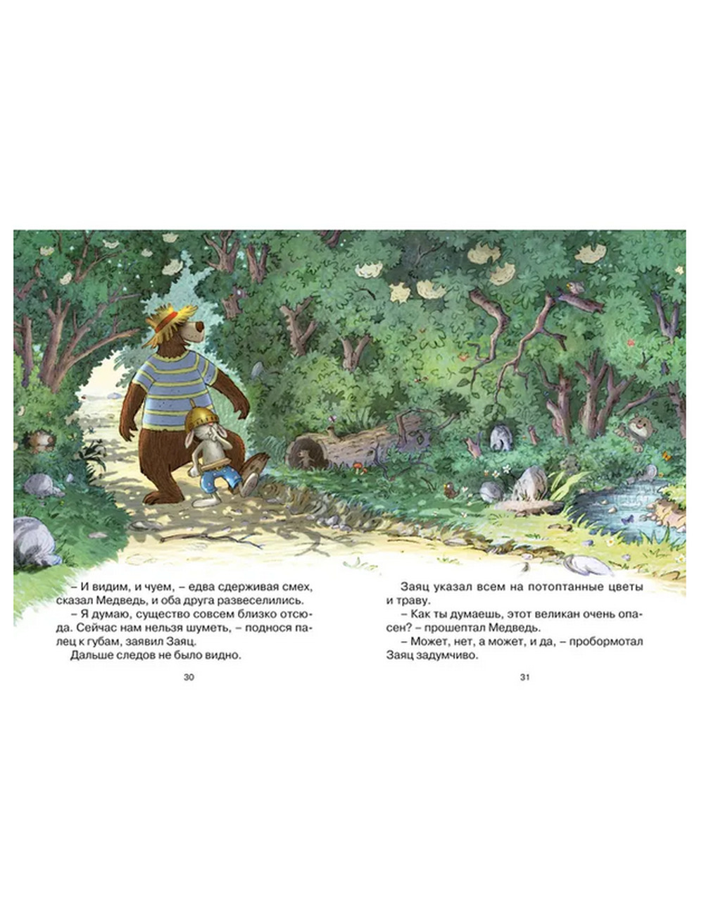 Что за неведомое чудище оставило гигантские следы по всему Волшебному лесу и распугало зверей? Отважный Заяц и храбрый Медведь не поддаются страху и отправляются на его поиски. Ведь это так волнительно и увлекательно познакомиться с настоящим великаном!