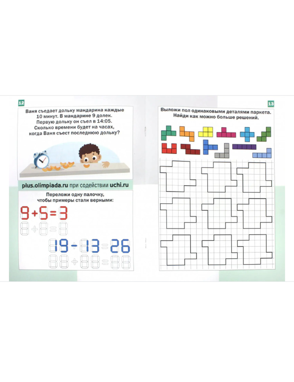 Эта тетрадка - приз тем, кто решил олимпиаду "ПЛЮС". В этой тетрадке встречаются задачи, похожие на те, что были в наших олимпиадах в декабре 2015, феврале и апреле 2016 года. Тут есть задачи про двери дворцов и греческие числа, про пещеры и тени башен. А есть в этой тетрадке и новые задачи, которые ты ещё не встречал. Возможно, даже взрослые не смогут справиться со всеми этими задачками и найти все возможные решения. Умеешь ли ты разгадывать шифры и решать задачи про ковры? Можешь ли придумать свои задачи со спичками? Разгадал ли ты, как обыграть мудреца? Мы надеемся, что эти задачи тебя порадуют.
