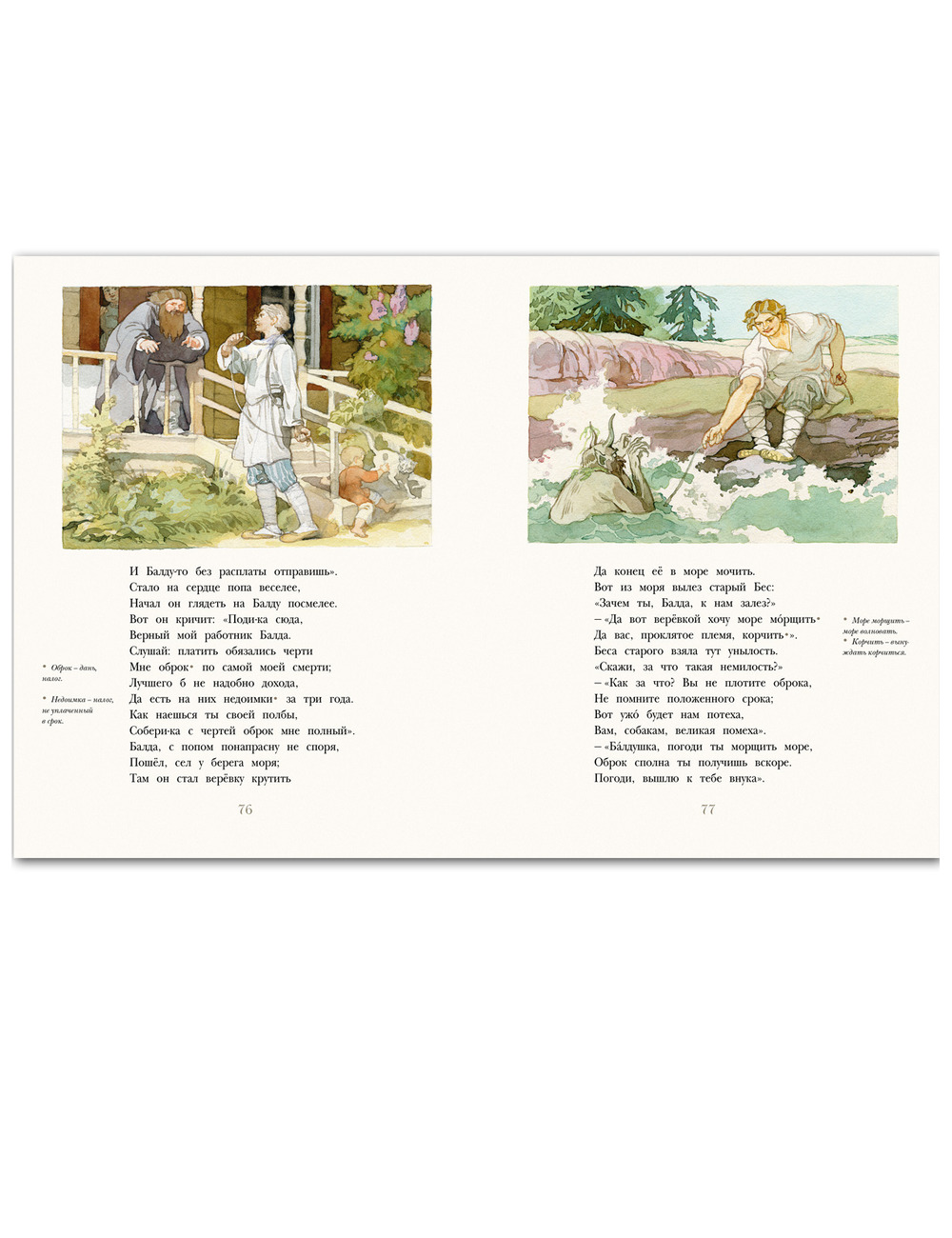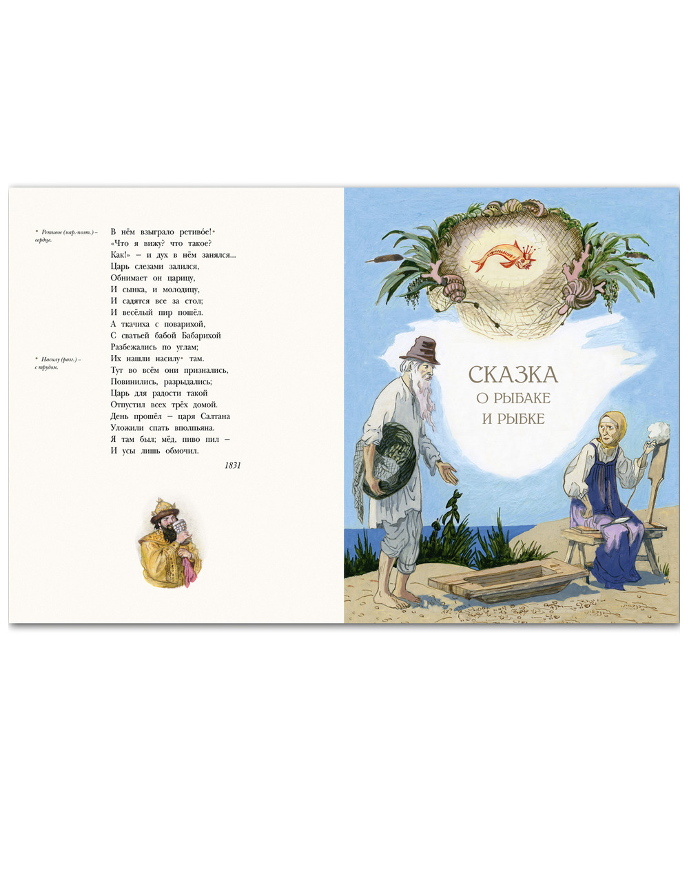 Мир ребенка немыслим без сказок А. С. Пушкина. Одним из первых к их иллюстрированию обратился “главный детский художник СССР”, более 30 лет возглавлявший художественную редакцию издательства “Детская литература”, Борис Александрович Дехтерев (1908–1993). Первые рисунки были сделаны художником в 1946 году - к готовящемуся юбилейному трехтомнику произведений поэта. В издание вошли по три рисунка к сказкам “О царе Салтане”, “О мертвой царевне” и “О рыбаке и рыбке”. Чуть позже, в сборнике сказок для детей, Б. Дехтерев широко проиллюстрировал пером “Мертвую царевну” и “Сказку о попе”. А еще короткое время спустя была подготовлена большая серия карандашных рисунков ко всем пяти сказкам. Включенные в настоящий сборник цветные рисунки датируют периодом 1949–1957 гг. Собранные вместе, в самостоятельном издании они публикуются впервые.