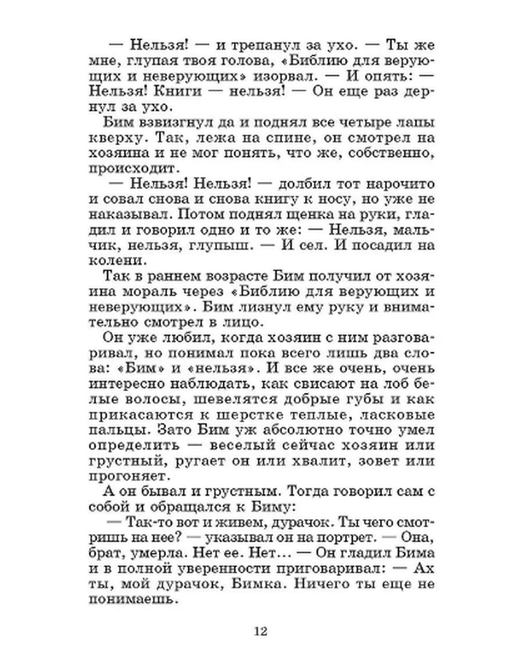 Широко известная повесть о собаке, умном, добром сеттере Биме, и о людях, добрых и злых, которых встречает Бим. Автор страстно защищает все живое на Земле, говорит об огромной ответственности человека перед природой. Для среднего школьного возраста.
