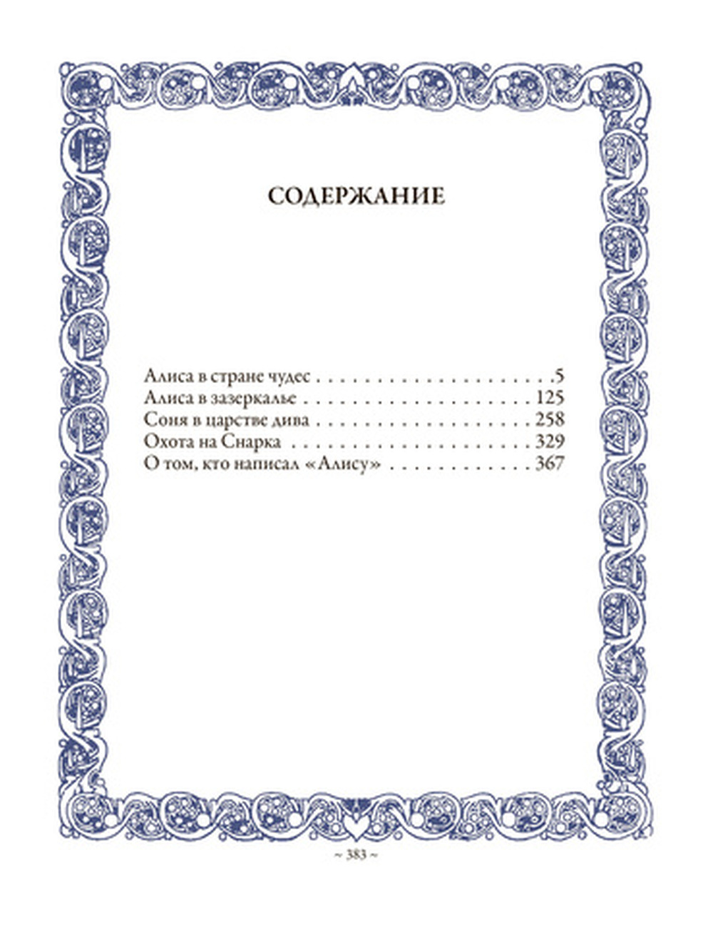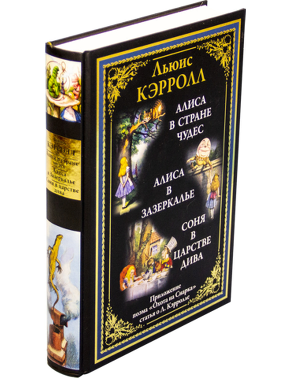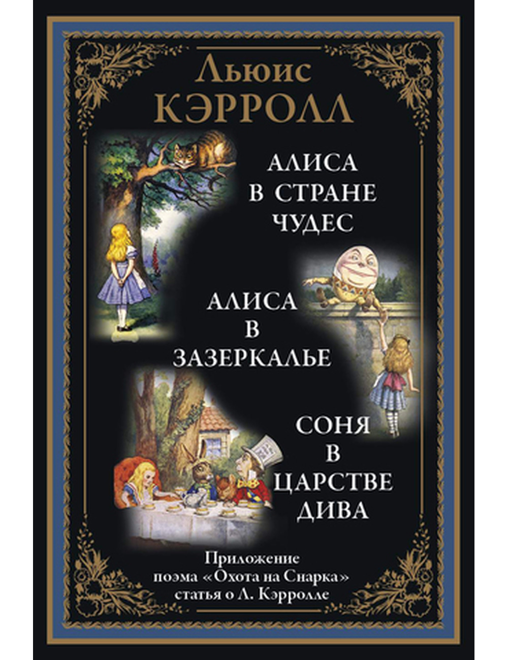 Безусловный успех повести подтолкнул Кэрролла написать продолжение. «Алиса в Зазеркалье» была закончена в 1871 году. Эту повесть, не менее любопытную и парадоксальную, также иллюстрировал Тенниел. Через восемь лет появился первый перевод «Алисы в стране Чудес» на русский язык. Повесть называлась «Соня в царстве дива». Она была отпечатана в Москве без указания автора и переводчика. Этот раритетный текст включен в данный сборник, как и менее известное произведение Кэрролла — «Охота на Снарка». В XX веке начали появляться и другие переводы «Алисы» на русский. В данном сборнике опубликован перевод Александры Николаевны Рождественской. «Алиса в Зазеркалье» дается в переводе Владимира Александровича Ашкинази, который печатался под псевдонимом В. А. Азов.