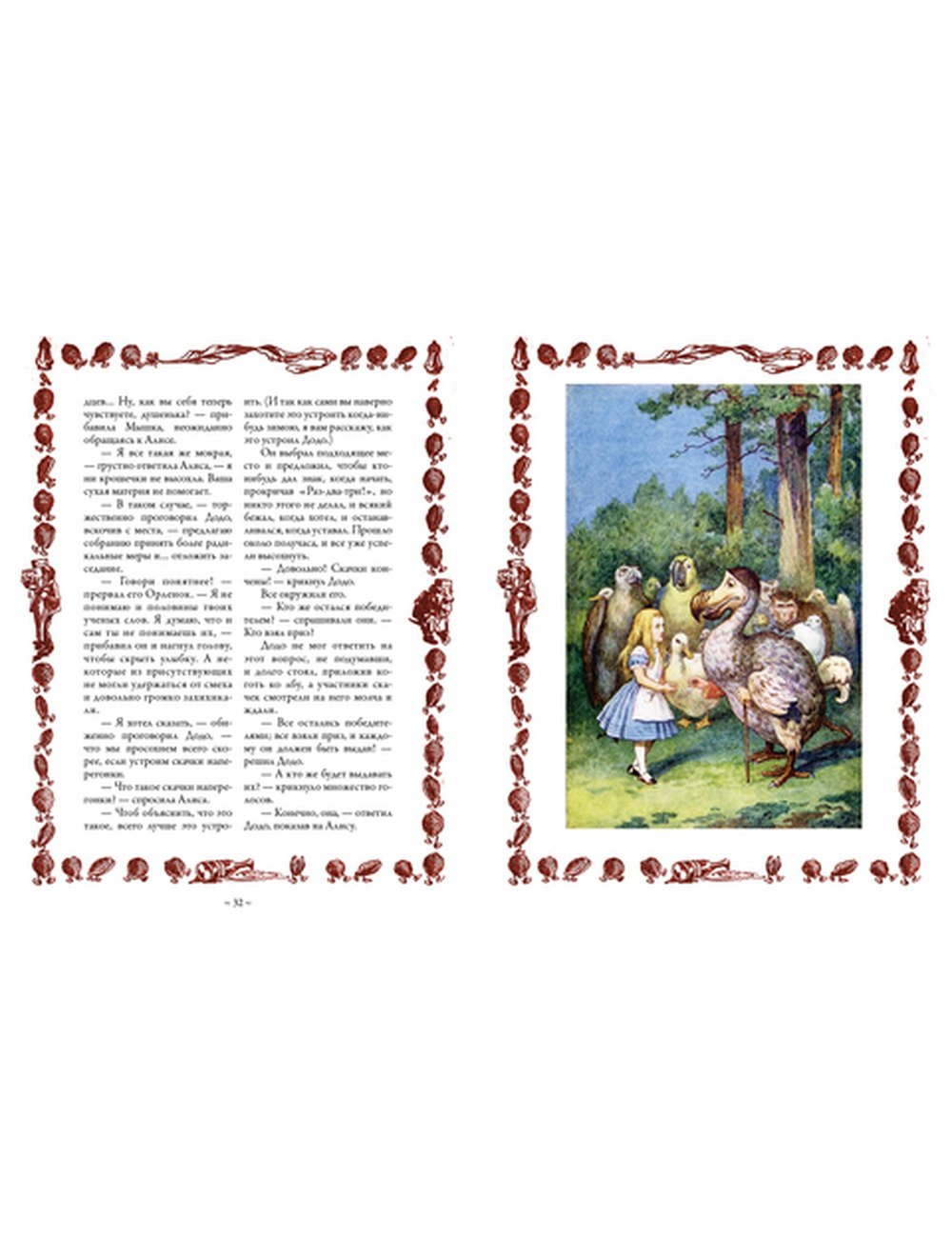Вряд ли имя английского математика Чарльза Лютвиджа Доджсона было в наше время столь популярным, если бы не две его повести, сочиненные им для трех девочек — дочерей оксфордского декана Генри Лиддела. История сохранила дату, с которой начались приключения Алисы в стране Чудес — 4 июля 1862 года. В этот знойный день во время лодочной прогулки по Темзе маленькие спутницы Доджсона попросили рассказать им сказку, и Чарльз принялся импровизировать. Начало повести девочкам так понравилось, что десятилетняя Алиса попросила ее записать. Ровно через три года, в 1865-м, сказка была опубликована в типографии Оксфорда. На обложке стоял псевдоним Доджсона — Льюис Кэрролл. Хотя сам Доджсон остался недоволен качеством печати этого первого издания, текст его повести сразу привлек внимание публики. Увлекательный сюжет в стиле фэнтези, о котором мало кто слышал в XIX веке, фантастические персонажи, необычные превращения — все в этой повести было ново и необычно. Впечатление от книги усиливали и великолепные иллюстрации графика Джона Тенниела. Несмотря на многочисленные переиздания «Алисы в стране Чудес» эти иллюстрации до сих пор считаются непревзойденной классикой, хотя уже в XX веке картинки к этой фантастической повести рисовали Сальвадор Дали, Туве Янсон и другие талантливые рисовальщики. Данное издание иллюстрировано именно работами Тенниела.