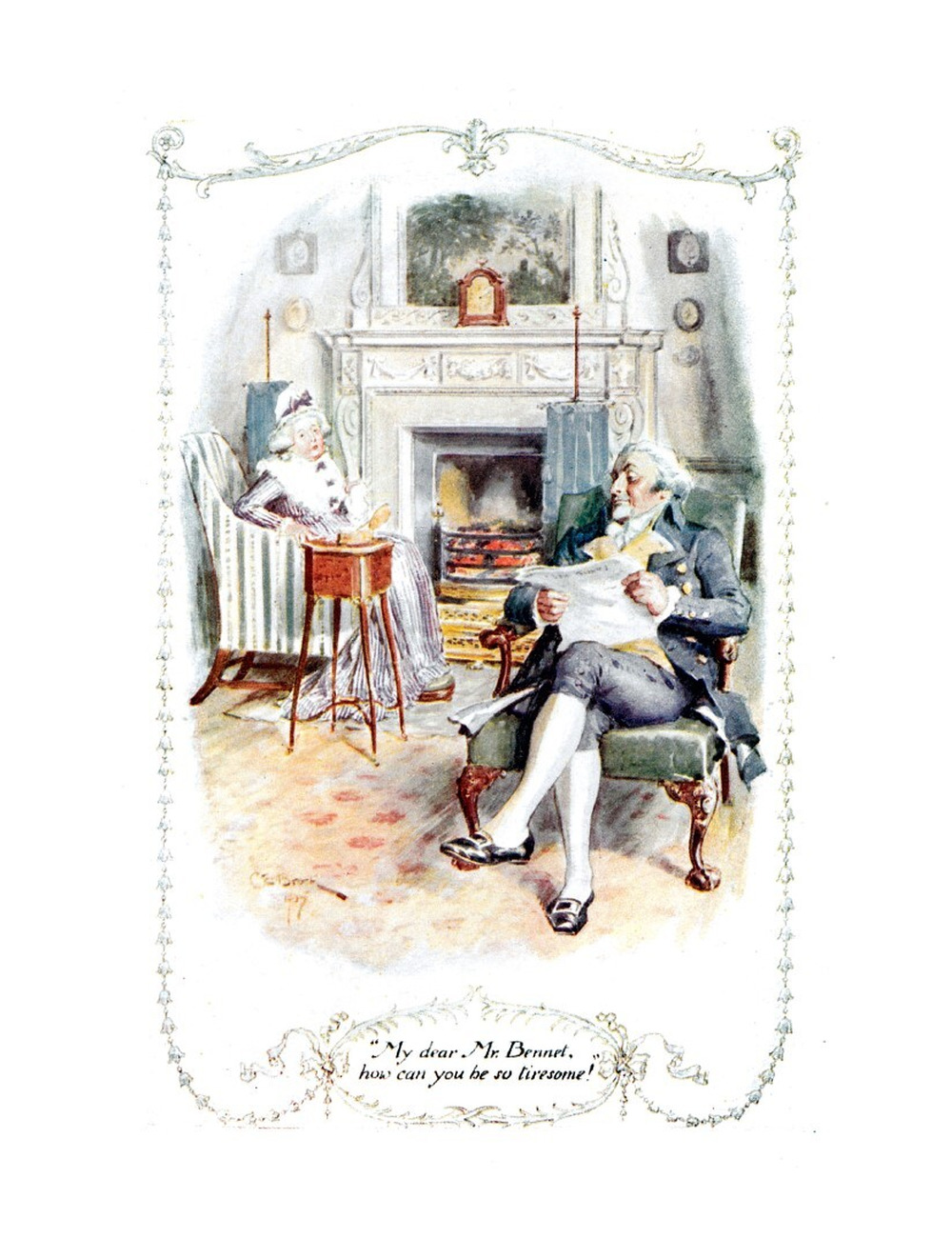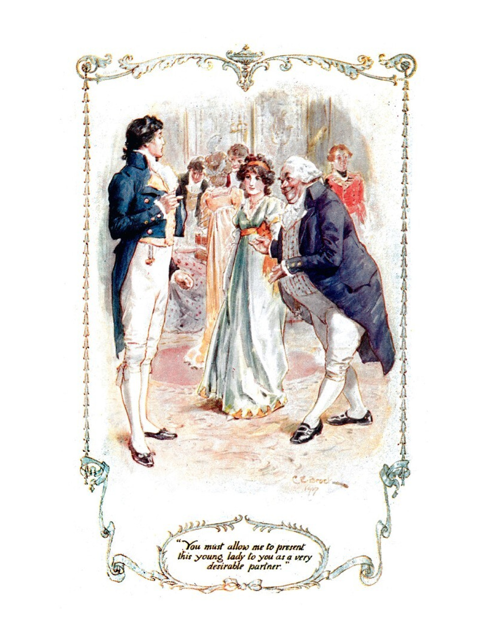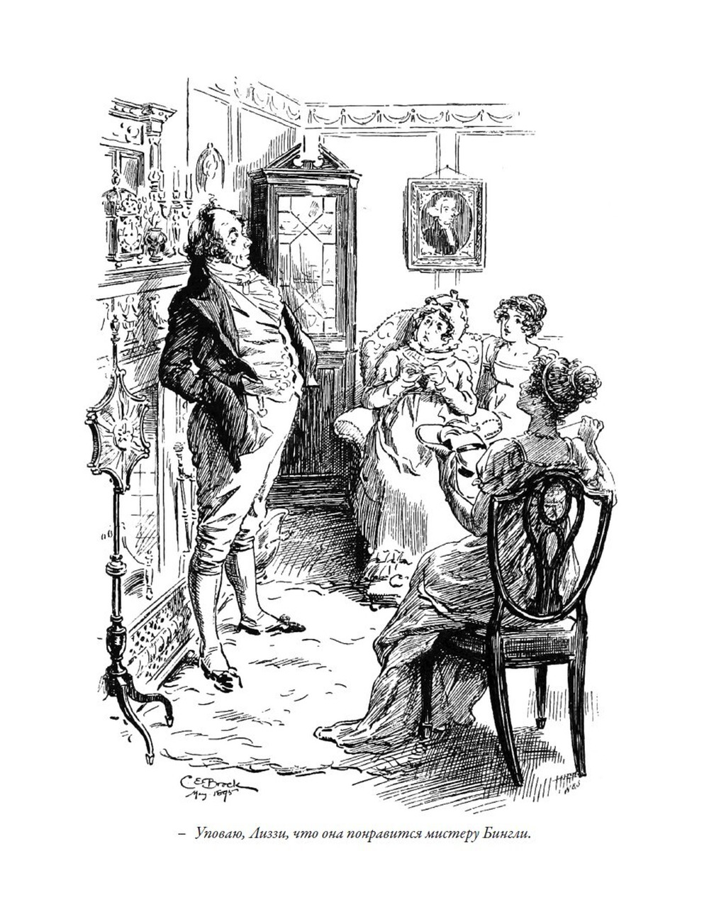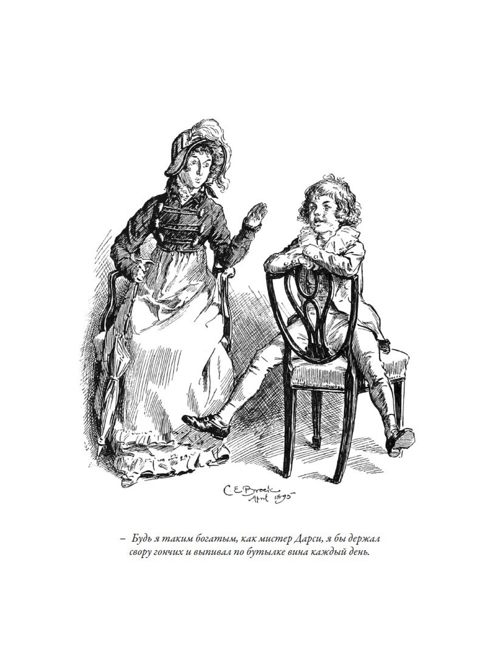 Наглядно представить персонажей произведений Джейн Остен и обстановку, в которой происходят события, позволяют прекрасные и достоверные в деталях иллюстрации двух английских художников, двух братьев - Чарльза и Генри Броков. Каждый из них мог 6ы стать персонажем Остен, хотя оба жили и творили примерно на сто лет позже - на рубеже ХIХ и ХХ веков. Чарльз Эдмунд Брок появился на свет в 1870 году. Он начал иллюстрировать книги в двадцать лет, творчески развивая манеру Хью Томсона, который считается одним из лучших британских мастеров книжной иллюстрации второй половины ХIХ века. Чарльз Брок добился на этом поприще большого успеха: помимо романов Остен, он работал над штриховыми рисунками к произведениям Свифта, Теккерея и Эллиота. Генри Мэтью Брок был на пять лет младше Чарльза. Он учился в Кембриджской школе искусств, тоже начал заниматься иллюстрированием и стал членом Королевского института художников-акварелистов.