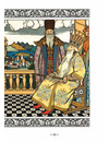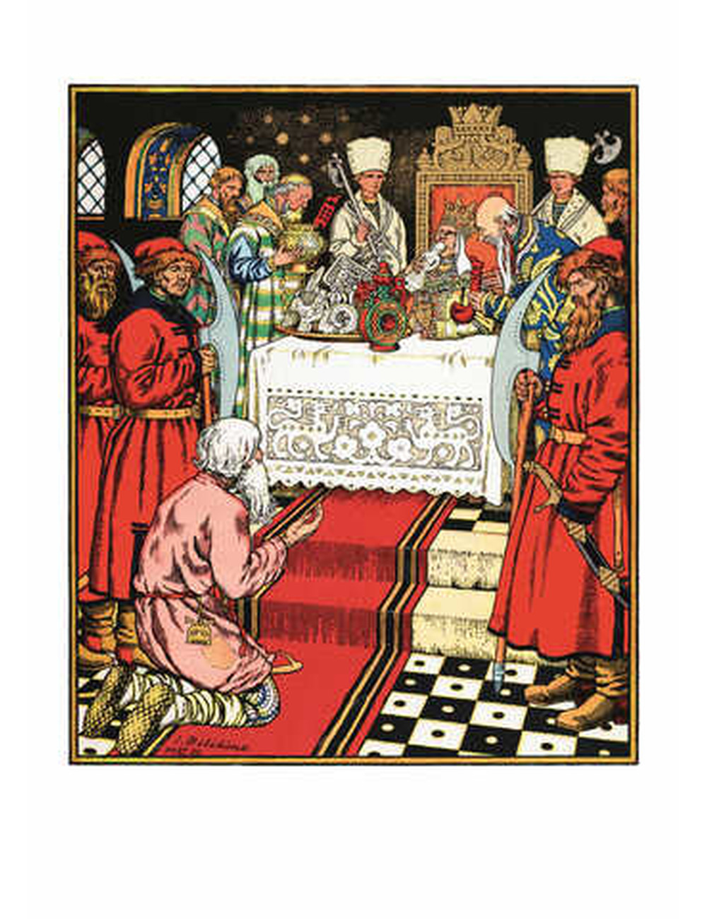 Иллюстрации к русским сказкам Билибина заметил князь Б. Б. Голицын, возглавлявший в конце XIX века так называемую «Экспедицию заготовления государственных бумаг». Под ее эгидой Голицын мечтал выпускать высококачественную печатную продукцию, которая способствовала 6ы эстетическому развитию народа. Рисунки Билибина как нельзя лучше соответствовали этой цели. Сотрудничество художника с «Экспедицией» продолжалось несколько лет. По заданию этнографического отдела Музея Александра III Билибин посетил Вологодскую, Олонецкую и Архангельскую губернии, где изучал деревянное зодчество. В начале ХХ века заставки, концовки, обложки и другие работы Билибина стали появляться в таких журналах как «Мир Искусства» и «Золотое Руно». Суровые ветры революции 1917 года заставили Билибина покинуть Россию. Он жил и успешно работал сначала в Каире, потом в Париже. Однако желание вновь оказаться на родине было так велико, что в 1936 году художник переехал в Ленинград. В этом городе он и умер зимой 1942 года от истощения, отказавшись после начала войны от предложенной ему властями эвакуации.