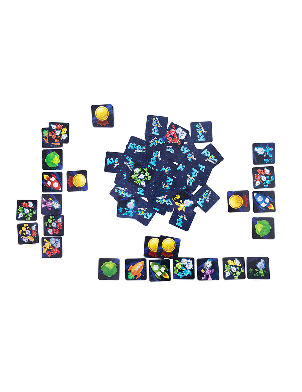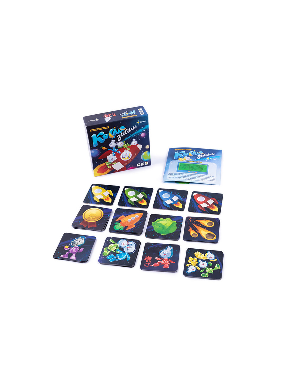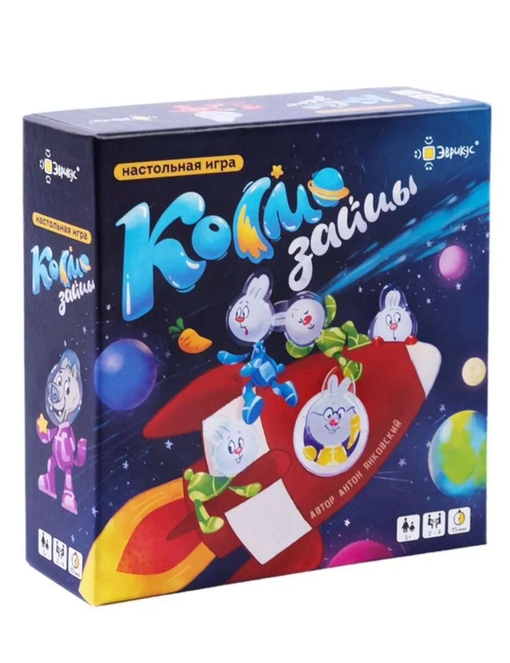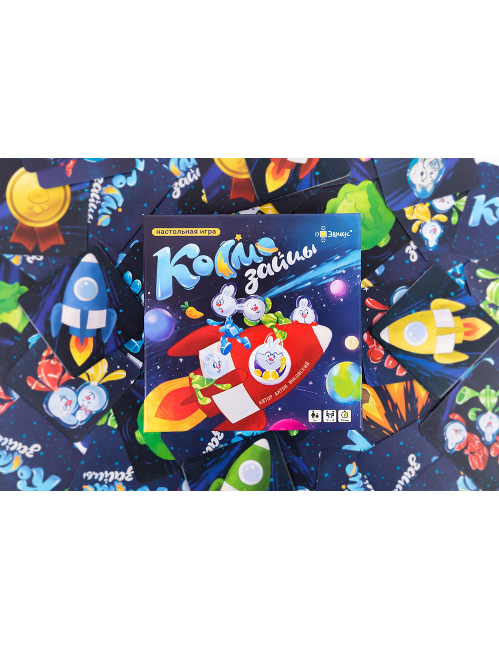 "Космозайцы" — это быстрая карточная игра на скорость и внимательность. Вам предстоит собирать в вашу ракету зайцев подходящего цвета. Но остерегайтесь команды космоволков и астероидов!