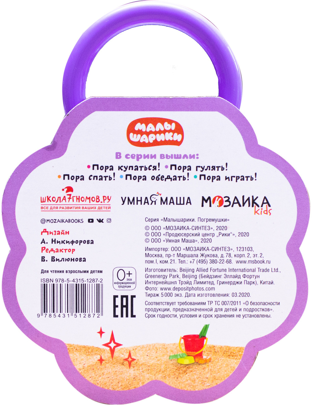 Книга «Пора гулять!» из серии «Малышарики. Погремушки» предназначена для знакомства с окружающим миром, развития речи и мышления у самых маленьких. В книге ребенок найдет 9 красочных фотографий предметов, окружающих его на прогулке (ведерко, лопатка, самокат, зонт, сапожки и пр.). Рассматривая их, малыш познакомится с полезными предметами и пополнит свой словарный запас. Книга-игрушка изготовлена из плотного картона и безопасной пены EVA, имеет удобный формат — ее легко держать в руках, можно взять в поездку или в гости.