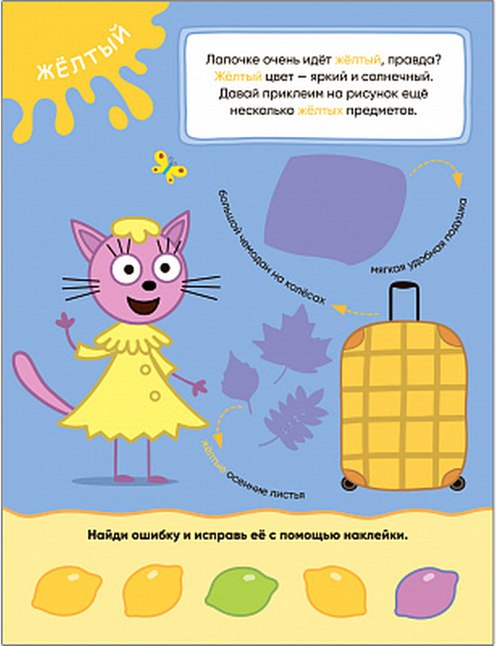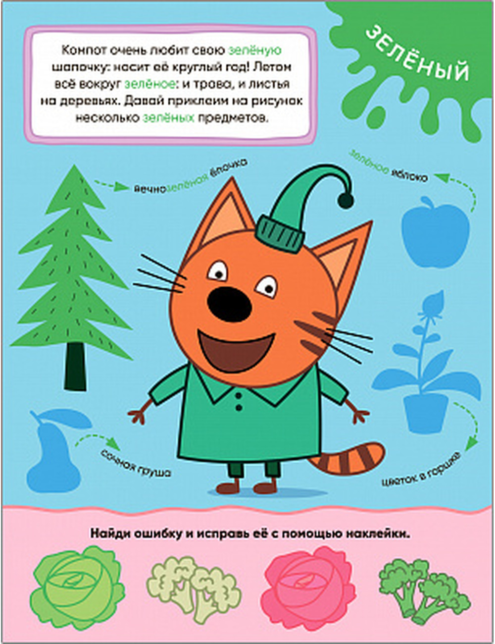 Книга «Цвета» серии «Три кота. Учимся с котятами» — это не только увлекательная книга с наклейками, но и отличный способ закрепить знания, развить мелкую моторику, логику и внимание. Вместе с тремя котятами ребенок познакомится с основными цветами: красным, желтым, зеленым, синим и оранжевым. На каждой странице его ждут задания на изучение того или иного цвета. Внизу страницы — забавные нелепицы, в которых нужно исправить ошибку. А в конце книги — задания для самопроверки. И все это с наклейками.
