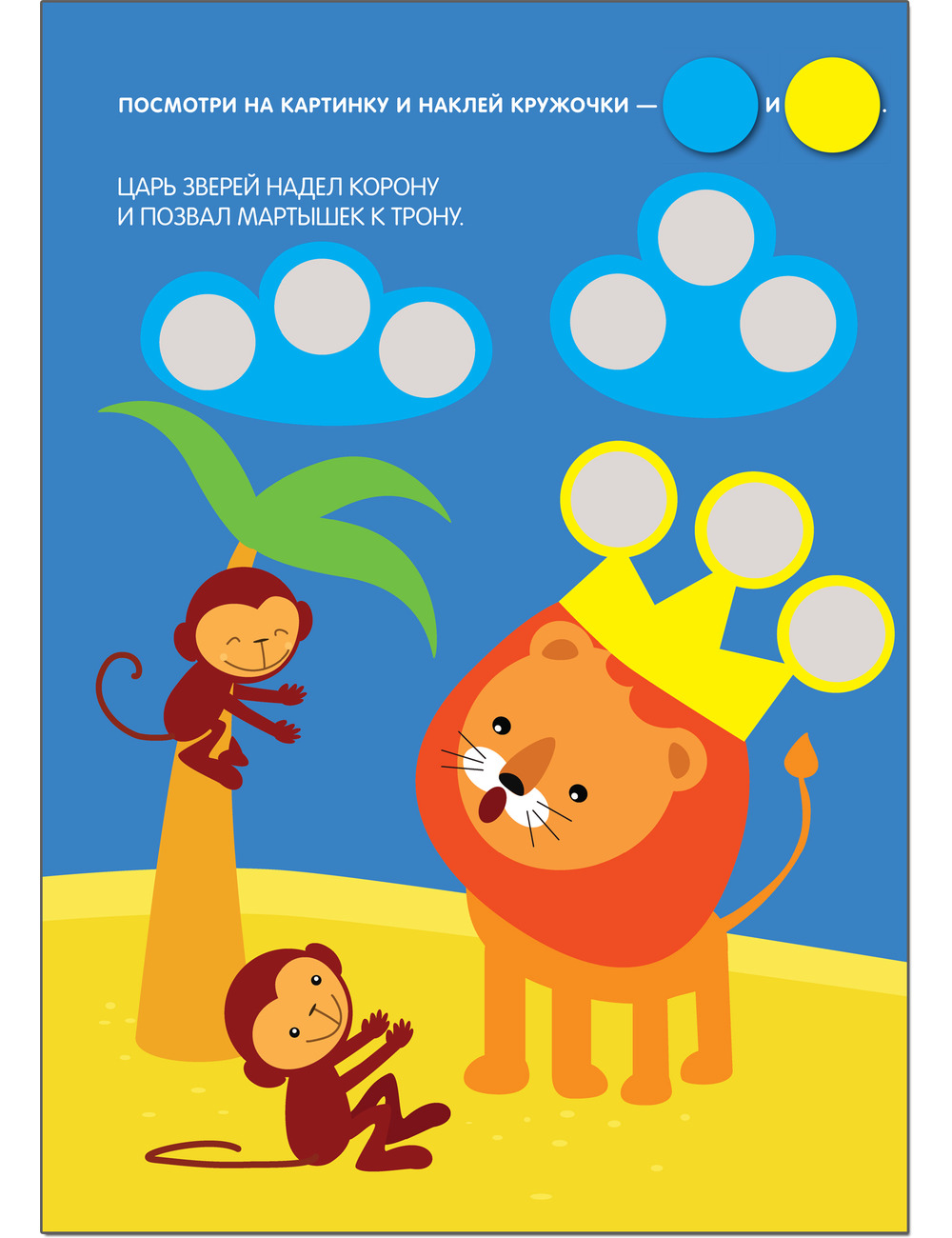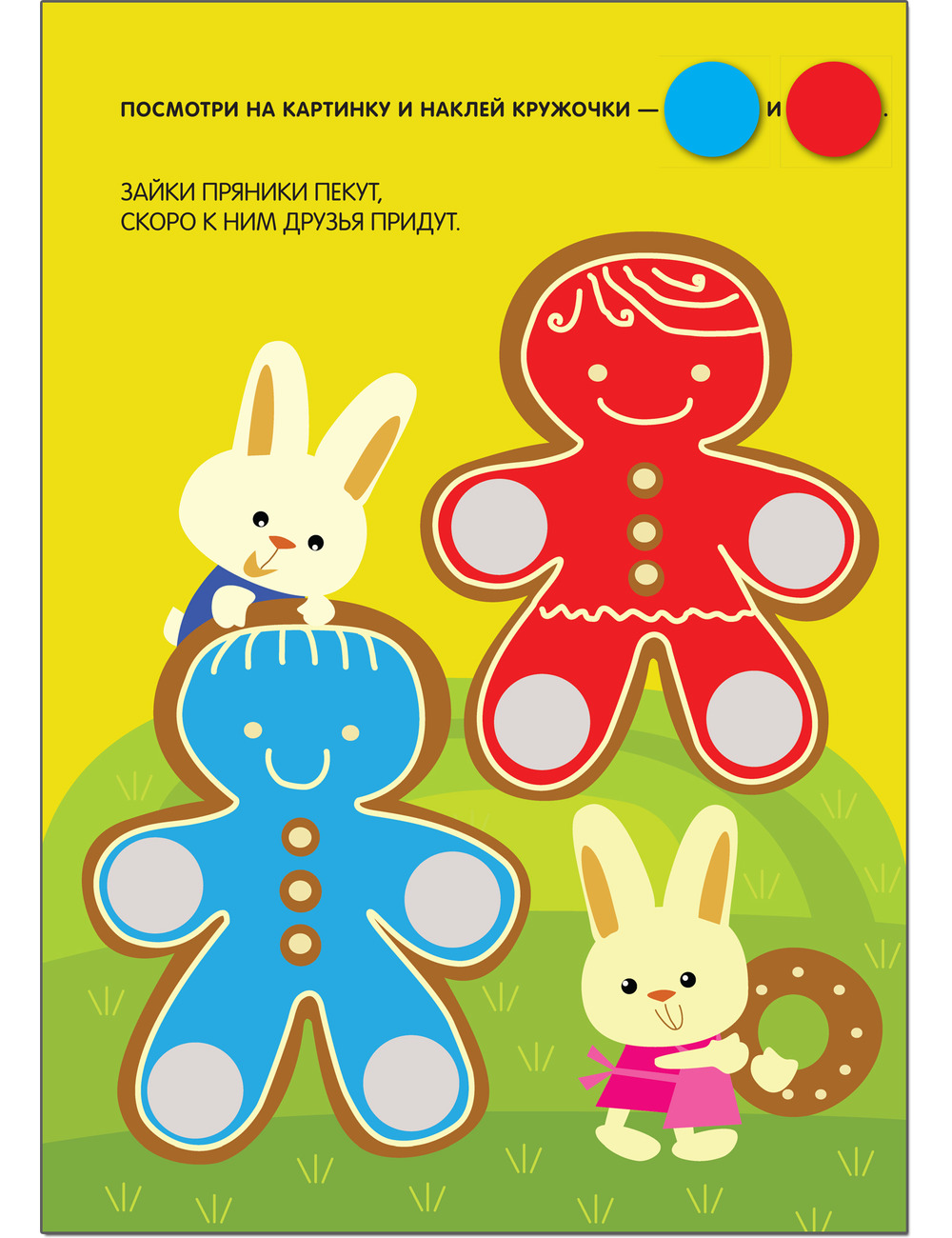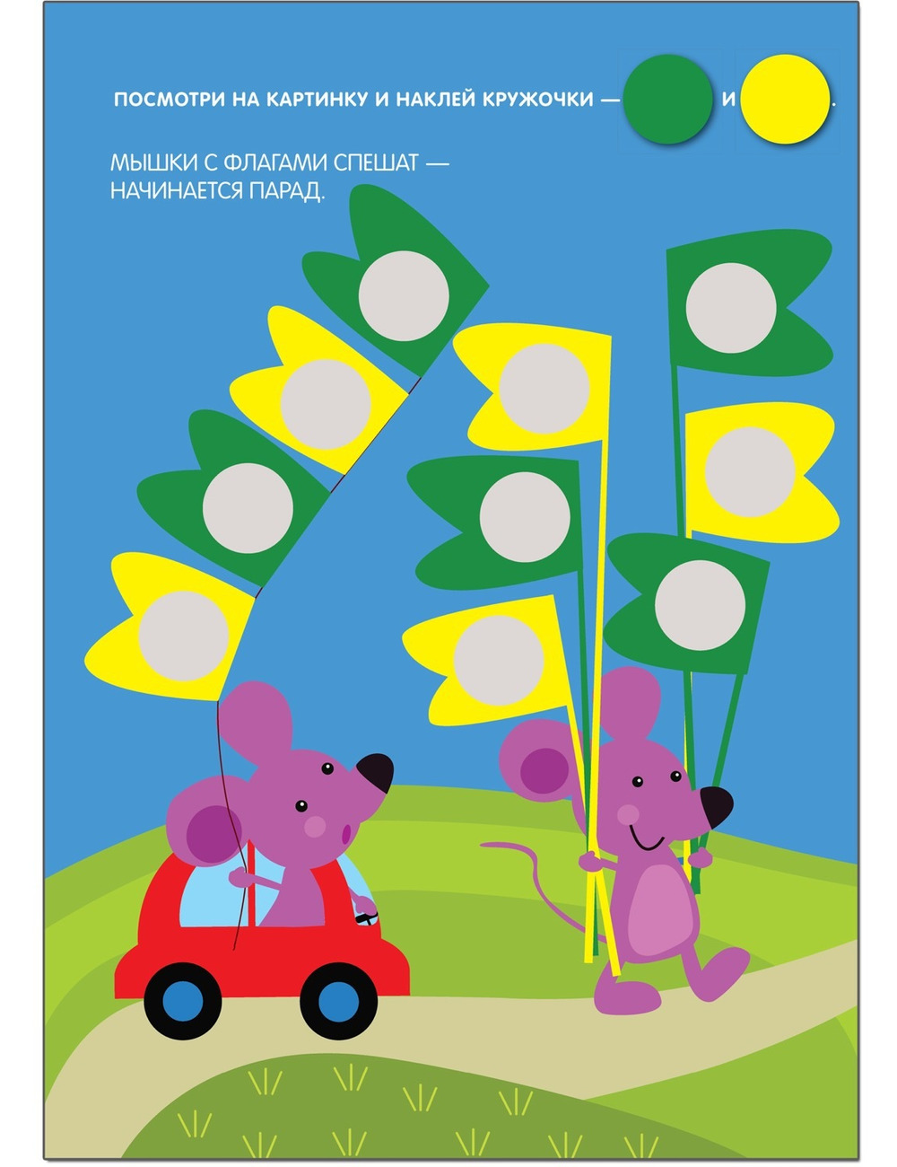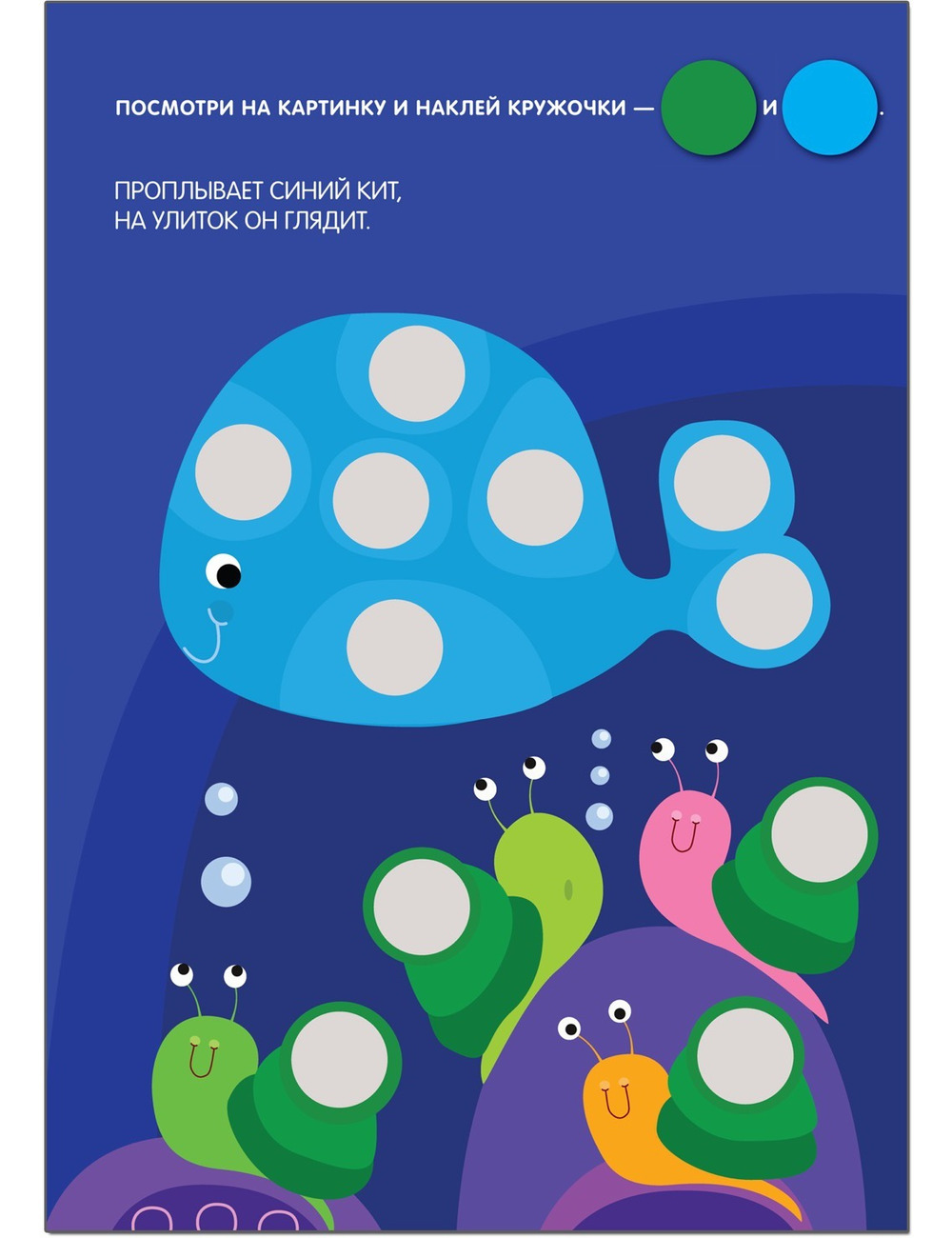 В ней Вас ждут 140 наклеек в виде разноцветных кружочков, простые весёлые стихи, красочные иллюстрации, доступные развивающие задания (подобрать наклейки-кружочки по цветам и приклеить их в нужное место).