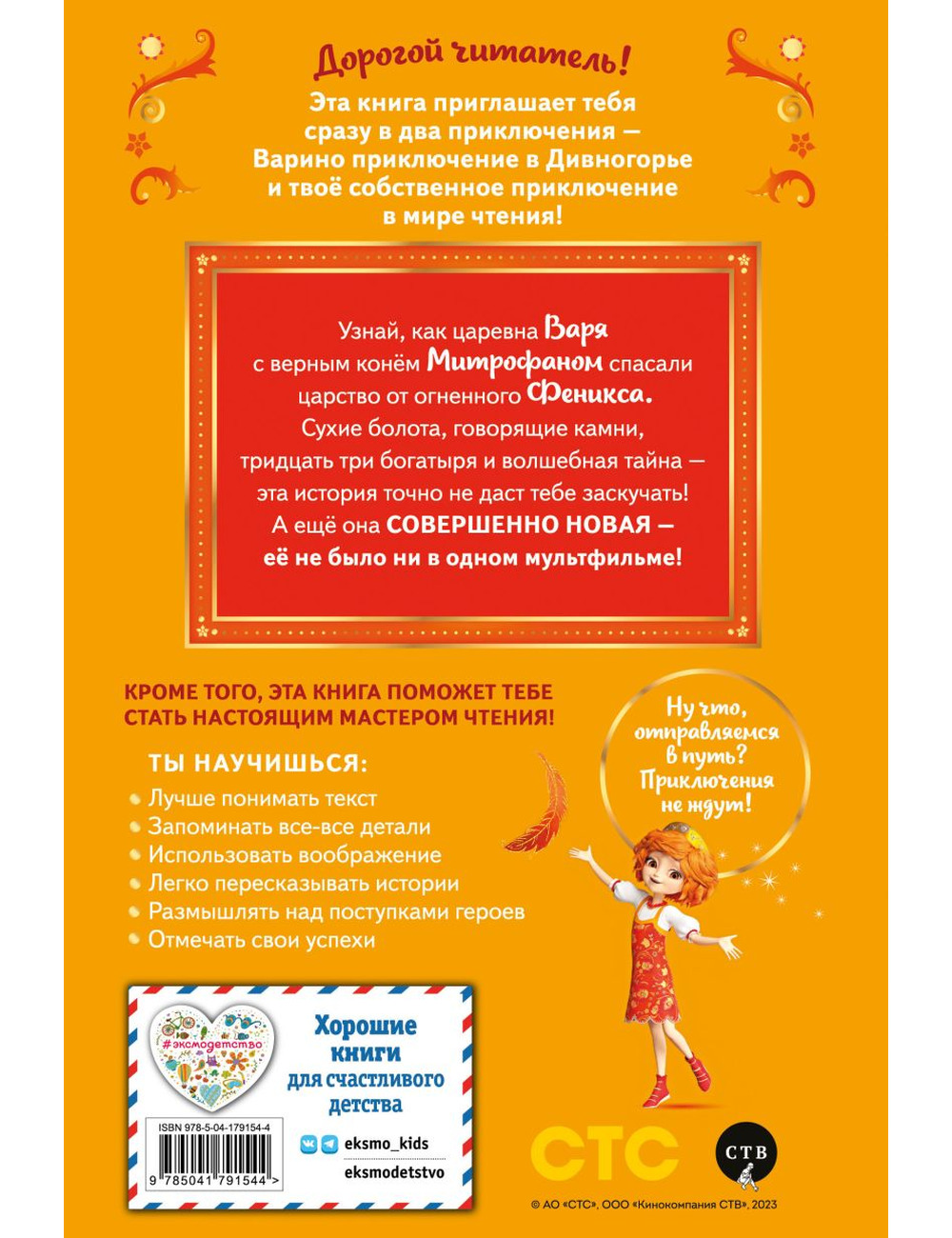 В этой истории ребёнку предстоит вместе с царевной Варей объехать волшебные земли Солнцеморья, найти легендарного Феникса и раскрыть тайну из старой сказки.