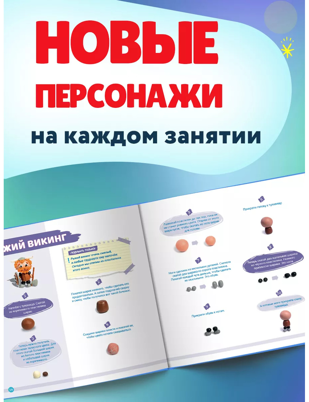 В книге представлены 9 фигурок для лепки специально для мальчиков - пират, викинг, бетономешалка, пожарная машина и другие.