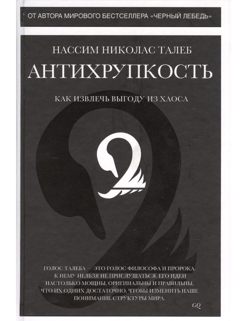 «Антихрупкость» — книга уникальная: она рассказывает о ключевом свойстве людей, систем и не только, свойстве, у которого до сих пор не было названия. В мире, где царит неопределенность, нельзя желать большего, чем быть антихрупким, то есть уметь при столкновении с хаосом жизни не просто оставаться невредимым, но и становиться лучше прежнего, эволюционировать, развиваться. Талеб формулирует простые правила, которые позволяют нам преодолеть хрупкость и действовать так, чтобы непредсказуемая неопределенность, этот грозный и внезапный Черный лебедь, не причинила нам вреда — и более того, чтобы эта редкая и сильная птица помогла нам совершенствоваться. Для этого следует в первую очередь осознать: мы по природе своей антихрупки — и не должны позволять кому бы то ни было лишать нас этого чудесного свойства.