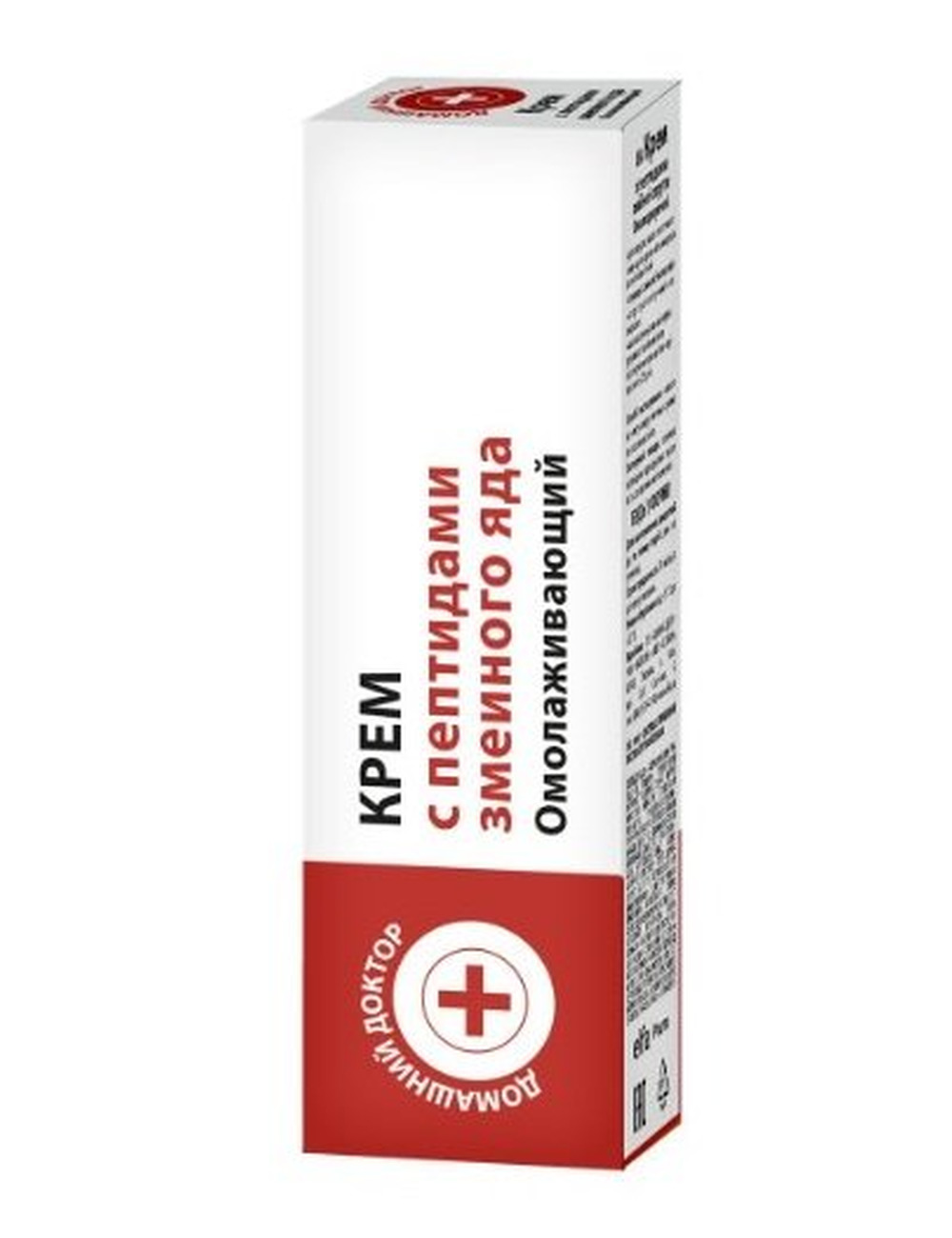 Крем для лица омолаживающий с пептидами змеиного яда «Домашний Доктор» качественно разглаживает тон и рельеф эпидермиса, активно борется с мимическими морщинами и тонкими линиями, предупреждает их дальнейшее образование.