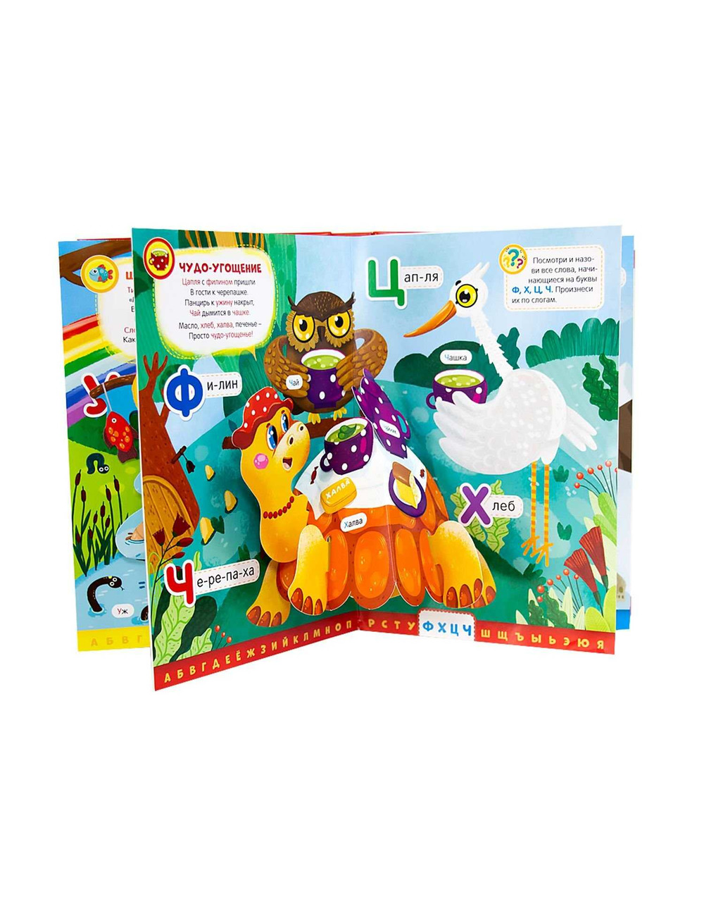 "Азбука" — это интерактивная энциклопедия с 3D-иллюстрациями и весёлыми стихами. Книга поможет ребенку выучить все буквы алфавита без особого труда. Наличие объемных элементов развивает мелкую моторику и пространственное мышление ребёнка. Интерактивная энциклопедия сделана из качественного и плотного картона, обеспечивающего износостойкость.