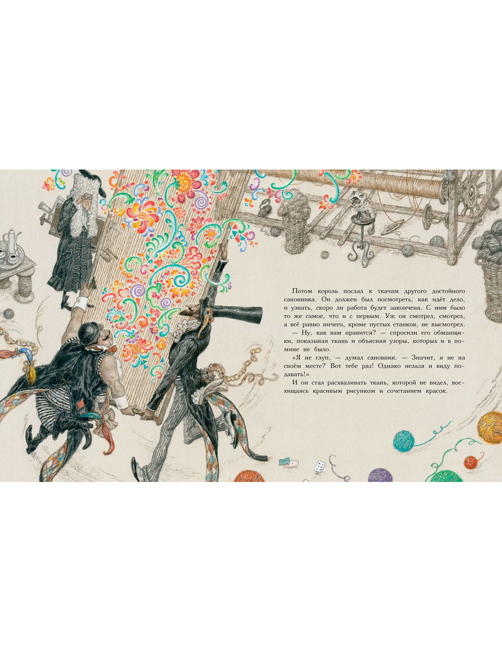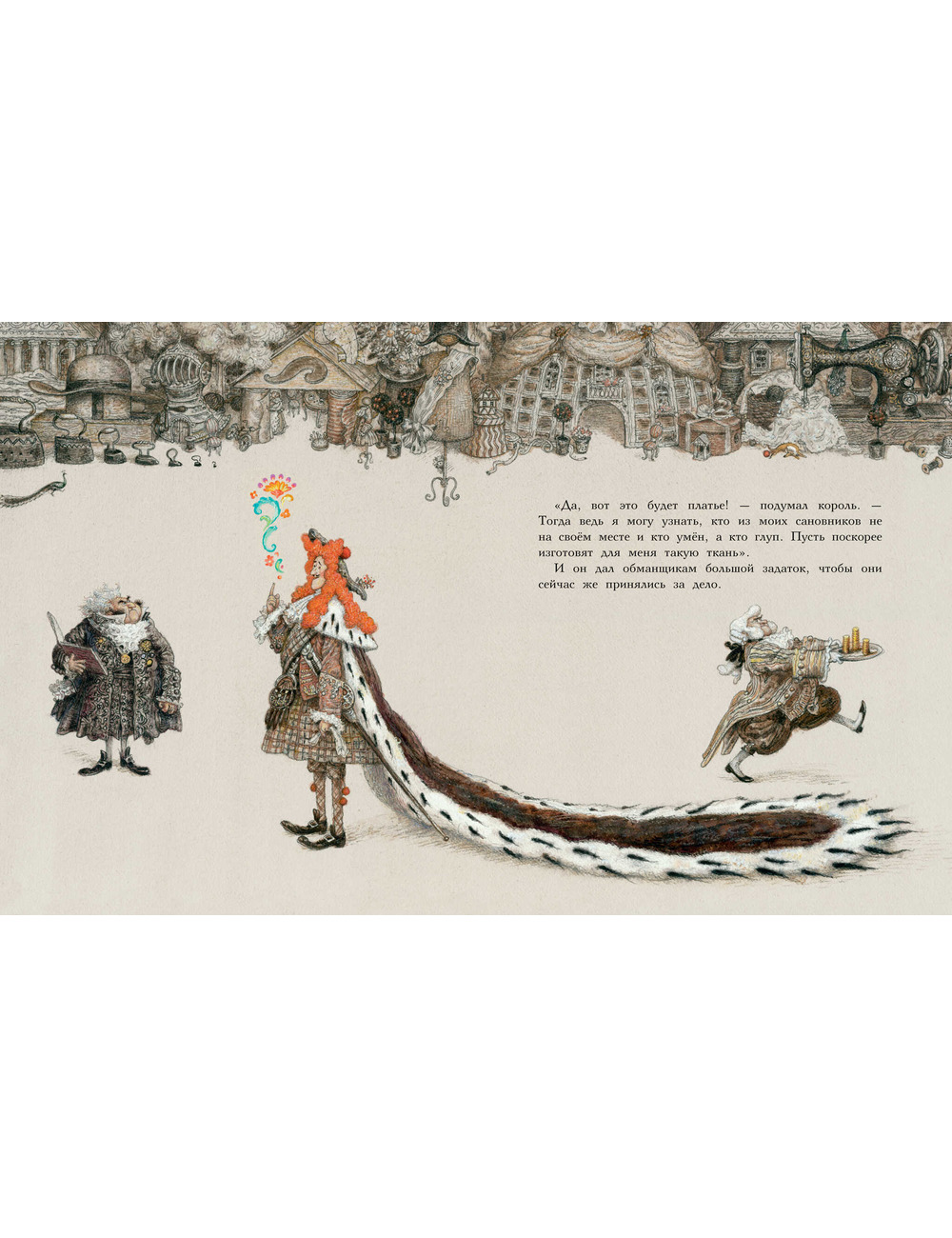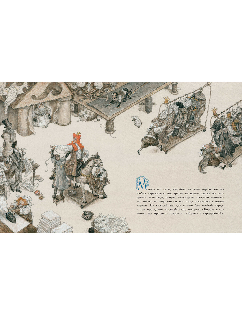 Жил да был король, который очень любил наряжаться. Само по себе это не удивительно: какой же король не любит пышных костюмов и церемоний? Но этот король из сказки Ханса Кристиана Андерсена задумал кое-что совсем особенное. Двое заезжих портных шьют ему платье из ткани удивительной красоты, да ещё обладающей одним волшебным свойством… Знакомая история, правда? А теперь полюбуйтесь на новое платье короля в исполнении блестящего художника Антона Ломаева. Весёлые и угрюмые, бестолковые и смекалистые, пышно разодетые и простоватые - персонажи бессмертной истории Андерсена словно оживают в новых иллюстрациях, полных захватывающей игры и ярких красок.