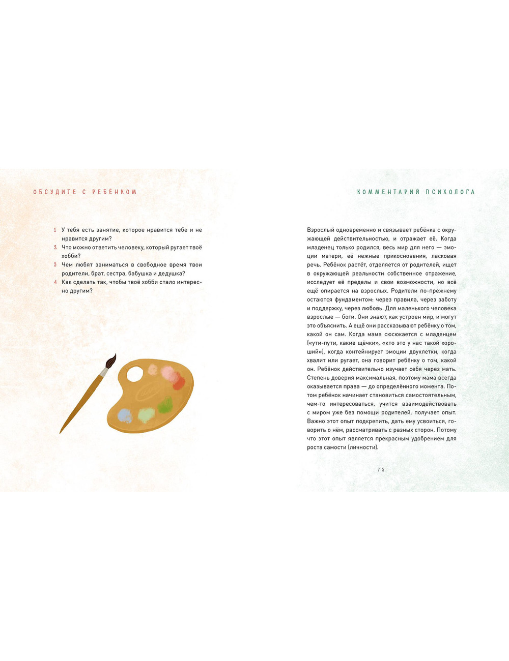 Читайте истории из книги вместе с ребенком, а потом обсуждайте их. В конце каждой главы есть список вопросов, которые помогут построить диалог, и советы психологов. Эта часть книги предназначена для родителей. Она поможет лучше понять ребенка и подскажет, что делать дальше.