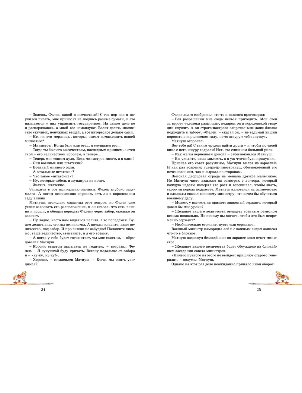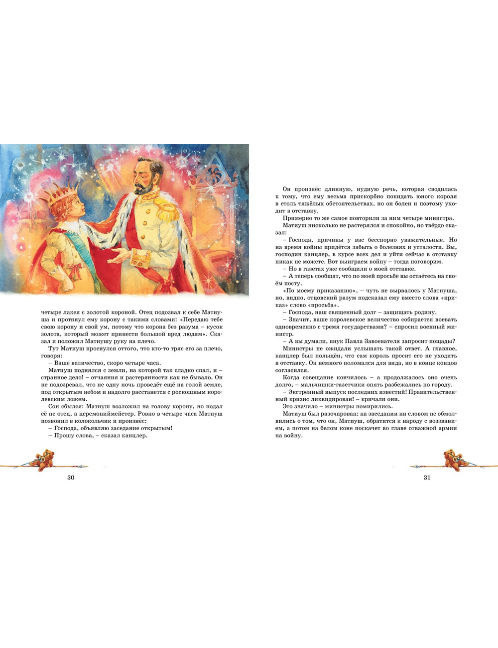 Одно из самых известных произведений писателя – повесть-сказка «Король Матиуш Первый». Это история юного Матиуша, который, рано потеряв родителей, вынужден был занять трон короля. Чувствуя ответственность перед своим народом, Матиуш, добрый и отзывчивый мальчик, всем сердцем хотел сделать жизнь людей в своём королевстве лучше. И прежде всего он думал о детях. Но сколько трудностей и разочарований ждало его на этом нелёгком, но благородном пути!
