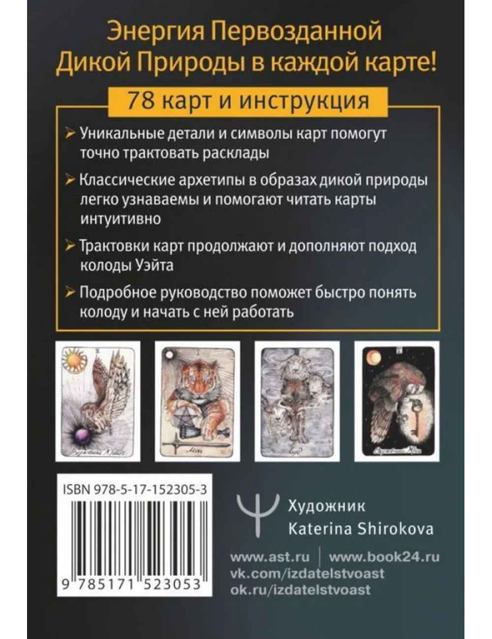 Яркие, завораживающие образы позволят получить ответы на самые сокровенные вопросы. Доверьтесь этой уникальной колоде, и Природа поделится с вами своей мудростью. Откройтесь Первозданной энергии, и она поможет вам увидеть скрытую силу Таро.