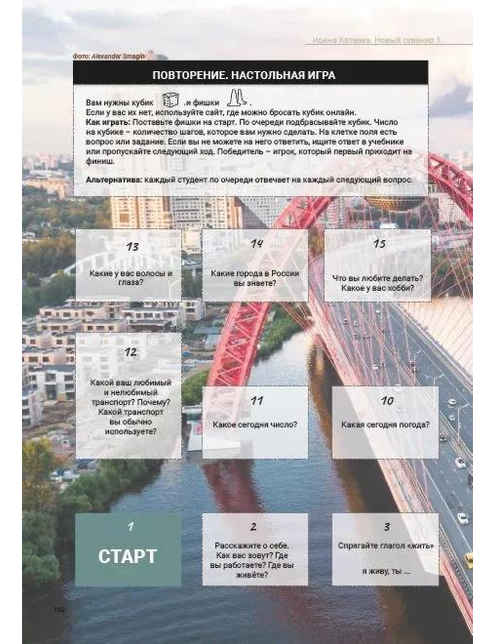 В учебнике нет языка-посредника, что позволяет использовать его с учениками-носителями разных языков.