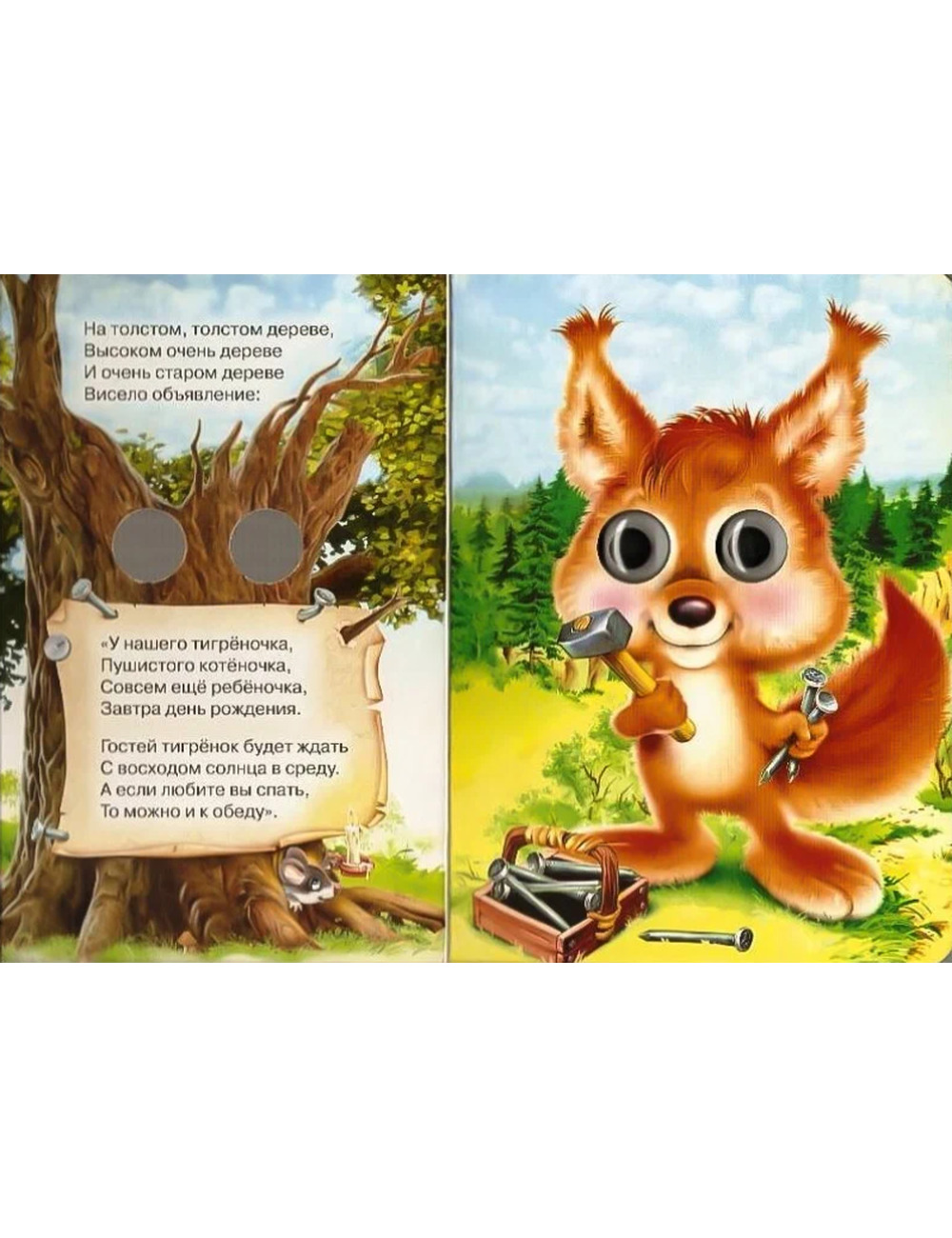 Занимательная книжка "День рождения", снабженная красочными иллюстрациями, понравится малышам. В книжку вошли занимательные и познавательные стихи. Издание представляет собой книжку-картонку удобного формата. На каждой странице у героя на месте глаз - прорези, на последней странице - пластиковые глазки с подвижными зрачками. Ребенок переворачивает страницы, и у каждого героя "появляются" глазки. Издание плотное, картонное.