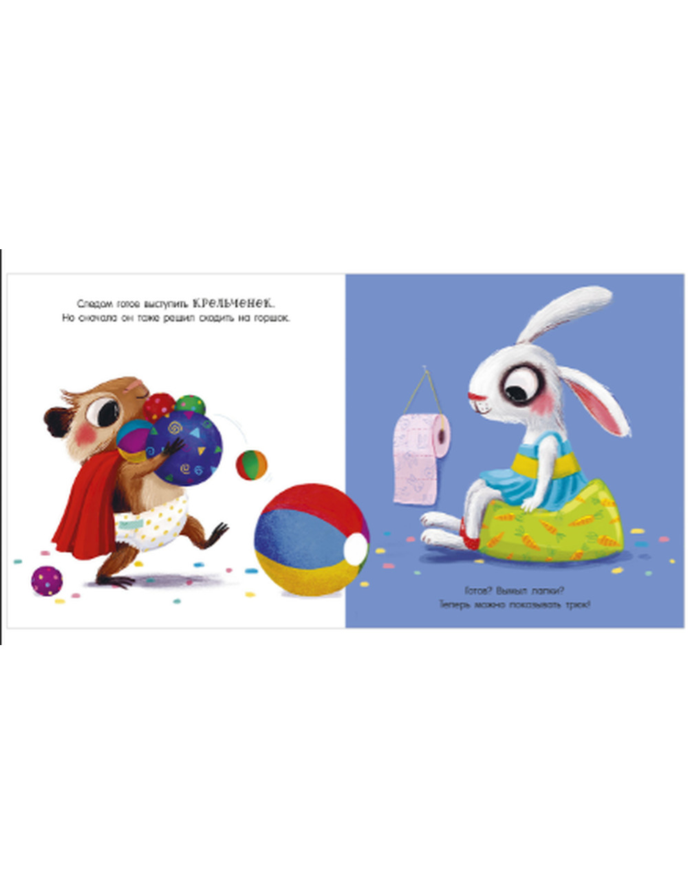 Попробуйте разыграть сценки из книги с ребенком и сделать все, как герои истории! Ведь осваивать навык приучения к горшку в формате игры вместе с милыми зверюшками гораздо проще и увлекательнее.
