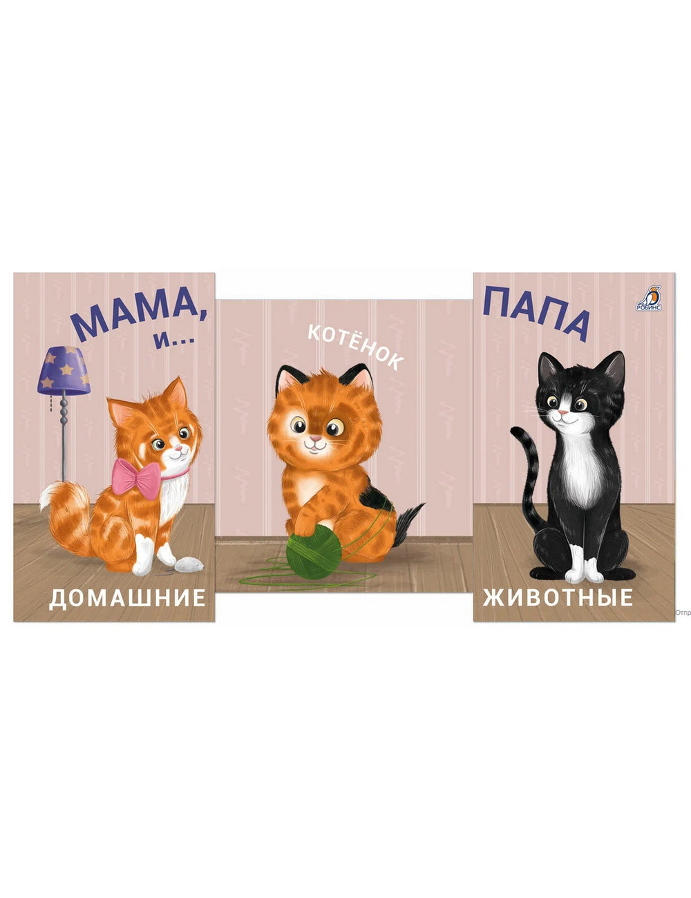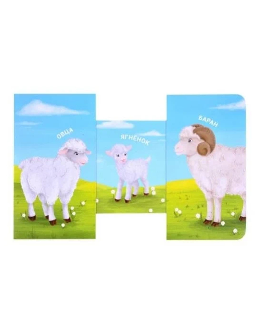 Раздвижная книжка-картонка «Мама, папа и малыш. Домашние животные» познакомит вашего малыша с детенышами животных и их родителями.