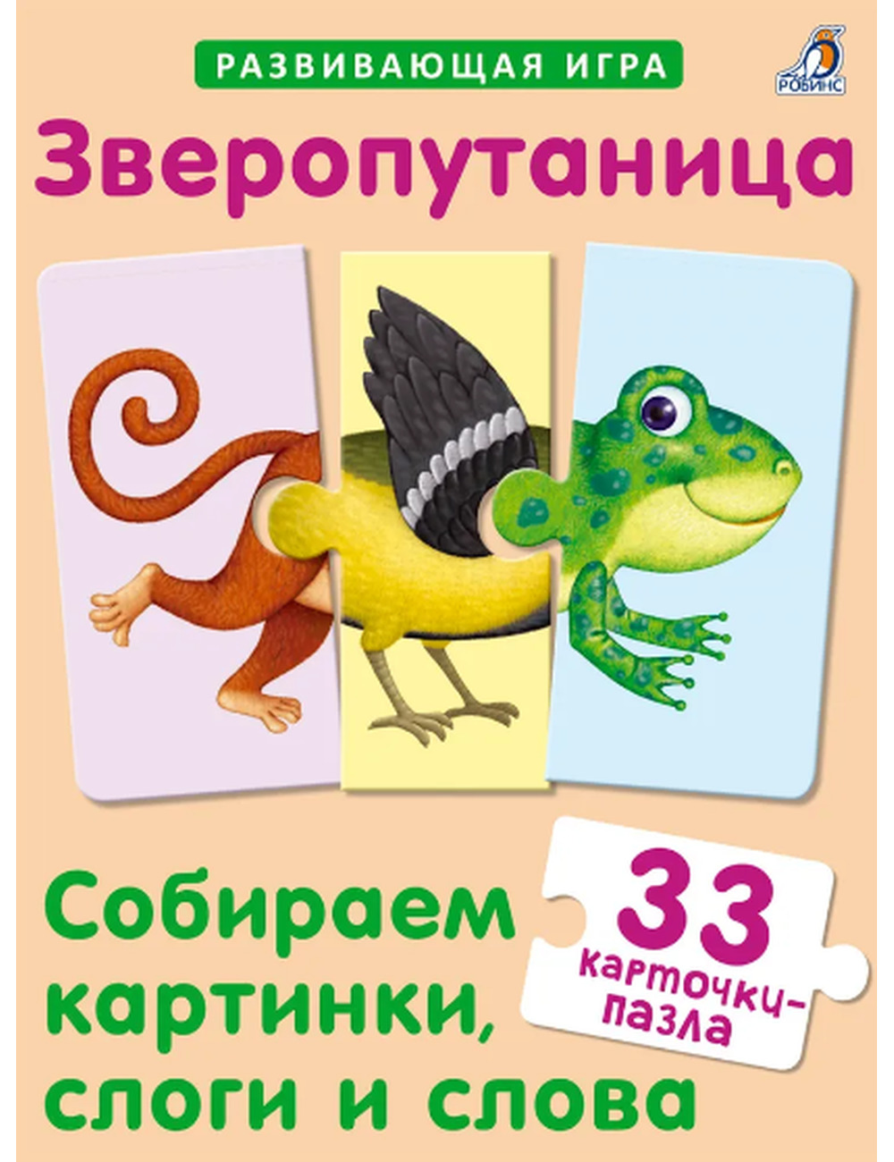 Увлекательная игра "Зверопутаница" для детей, направленная на развитие мышления, внимания, зрительного восприятия, мелкой моторики и воображения! В наборе 33 карточки-пазла, из которых ребёнок сможет складывать картинки животных и слова, состоящие из трёх слогов. В игре используется и лицевая, и оборотная сторона карточек. Проверить правильность собранного слова можно, перевернув их. Если слово собрано верно, то с другой стороны будет правильно собранная картинка.
