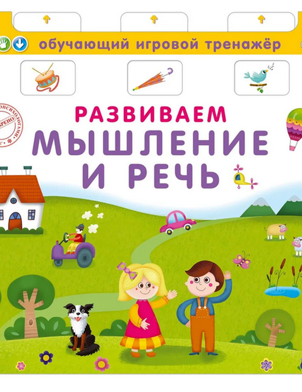Обучающий игровой тренажёр «Развиваем мышление и речь» – это пособие, с помощью которого ваш ребёнок сможет совершить большой рывок в развитии речи, научится подбирать ассоциации и рифмы, познакомится с такими важными понятиями как «одушевленное и неодушевленное», «рукотворное и нерукотворное», а так же научится полезным играм, в которые можно играть на улице и дома.