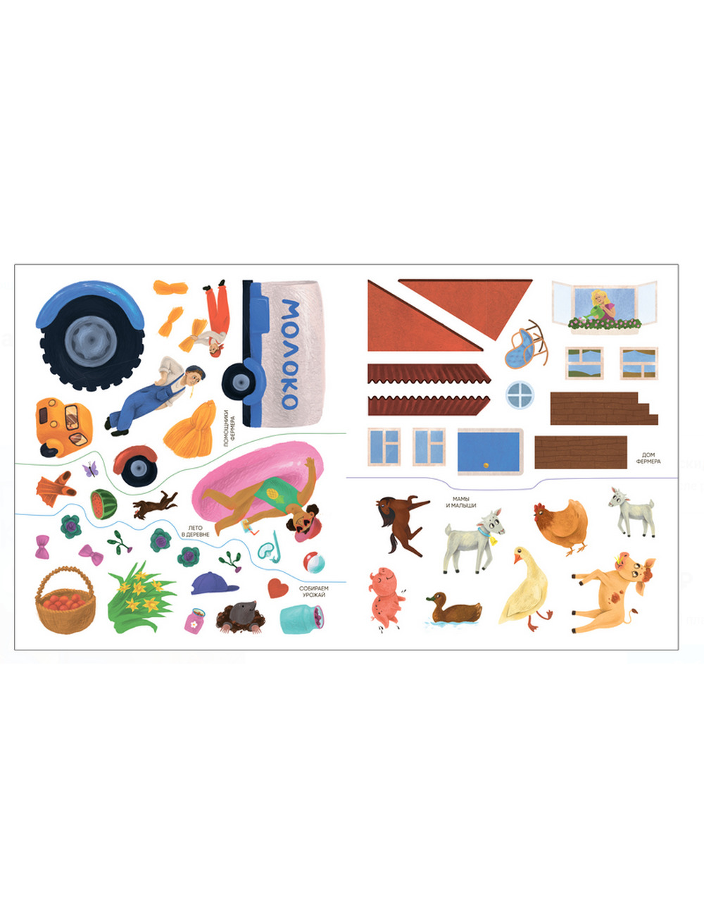 Книга «В деревне» из серии «Многоразовые наклейки» познакомит малыша с домашними животными, деревенской техникой и веселым отдыхом на природе ярким летним днем. В книге ребенка ждут 5 типов интересных и понятных заданий, которые он сможет выполнять самостоятельно. Такие задания помогут в развитии логики, внимательности, творческого мышления, мелкой моторики.