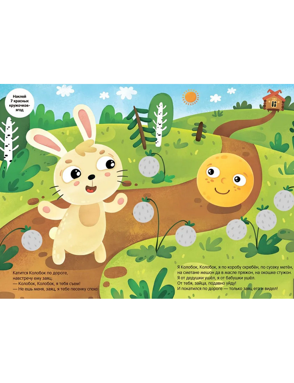 Книга "Колобок" серии "Сказки с кружочками" перенесет ребенка в волшебный мир одноименной русской народной сказки. На красочных страницах с яркими и забавными иллюстрациями малыша ждут любимые сказочные персонажи и увлекательные задания – ему предстоит подобрать 96 разноцветных наклеек-кружочков и дополнить ими картинки. Такие занятия способствуют развитию мелкой моторики, глазомера, усидчивости, аккуратности, внимания