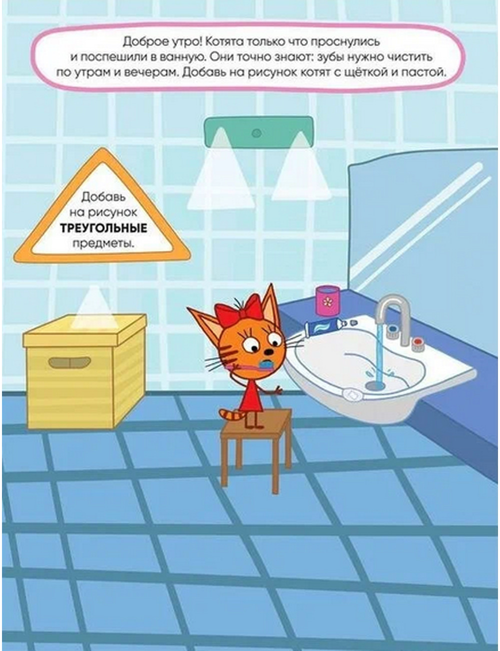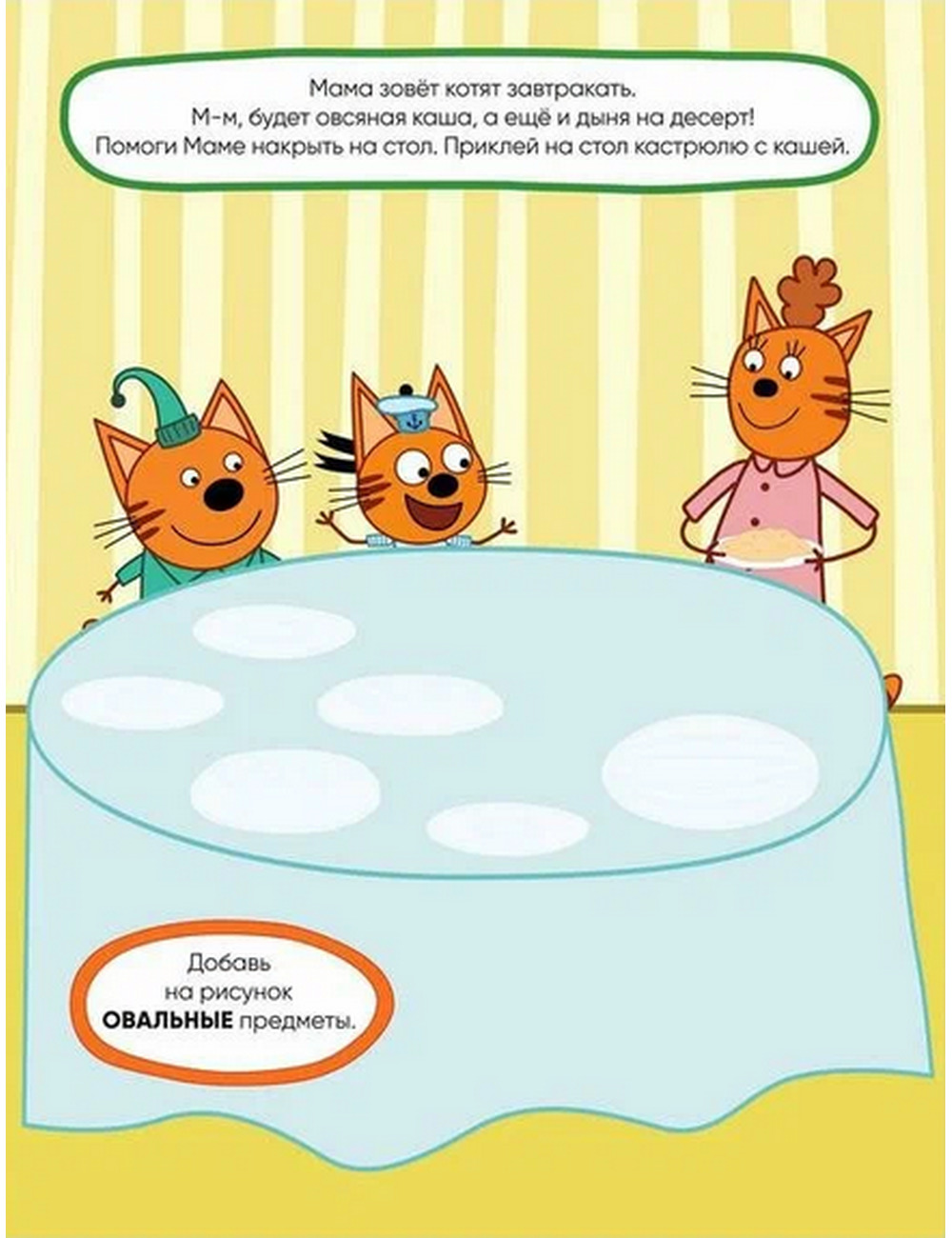Благодаря удобному формату заниматься по книге «Наш день» из серии «Три кота. Развивающие наклейки» можно где угодно: дома, в поездке, гостях и на прогулке.