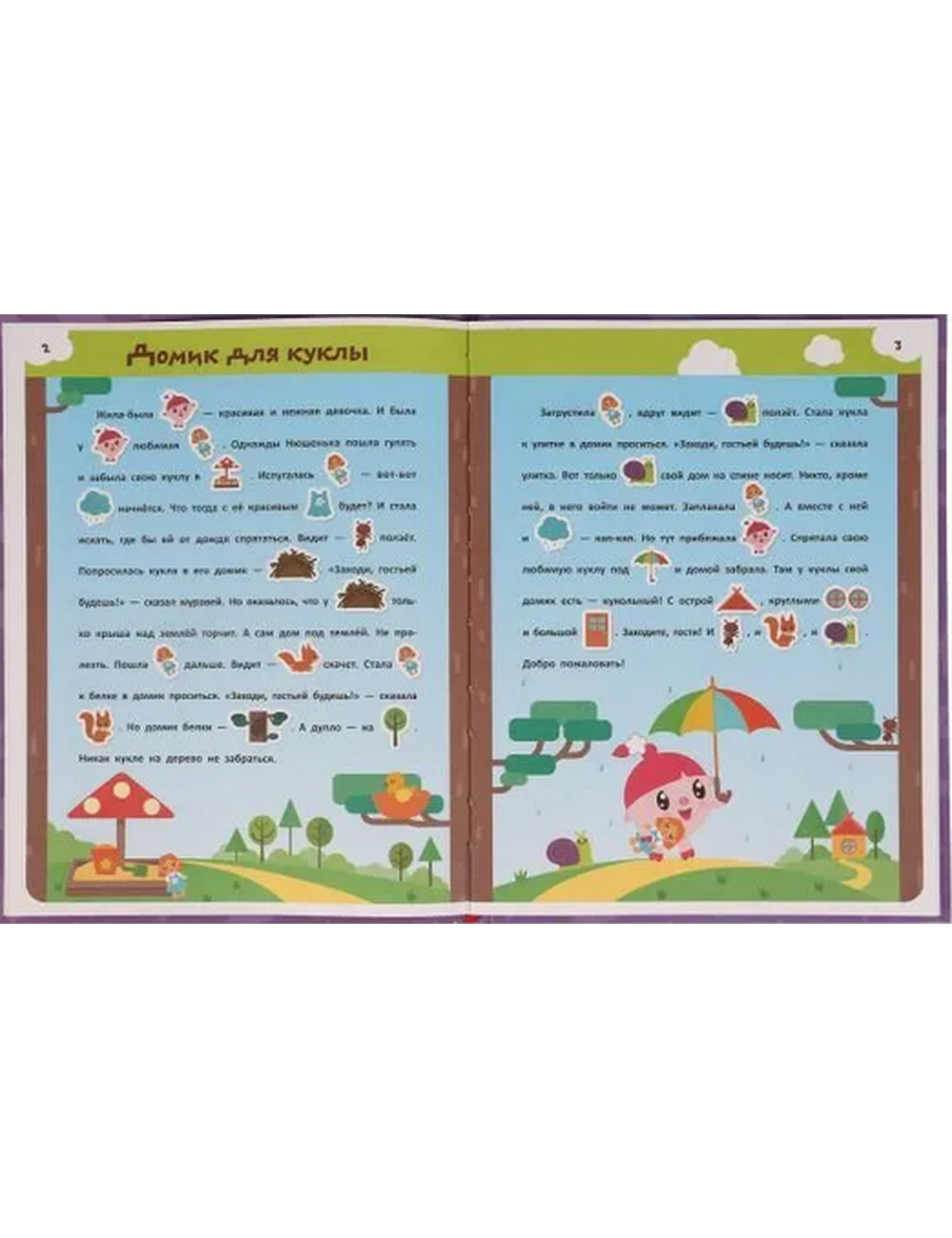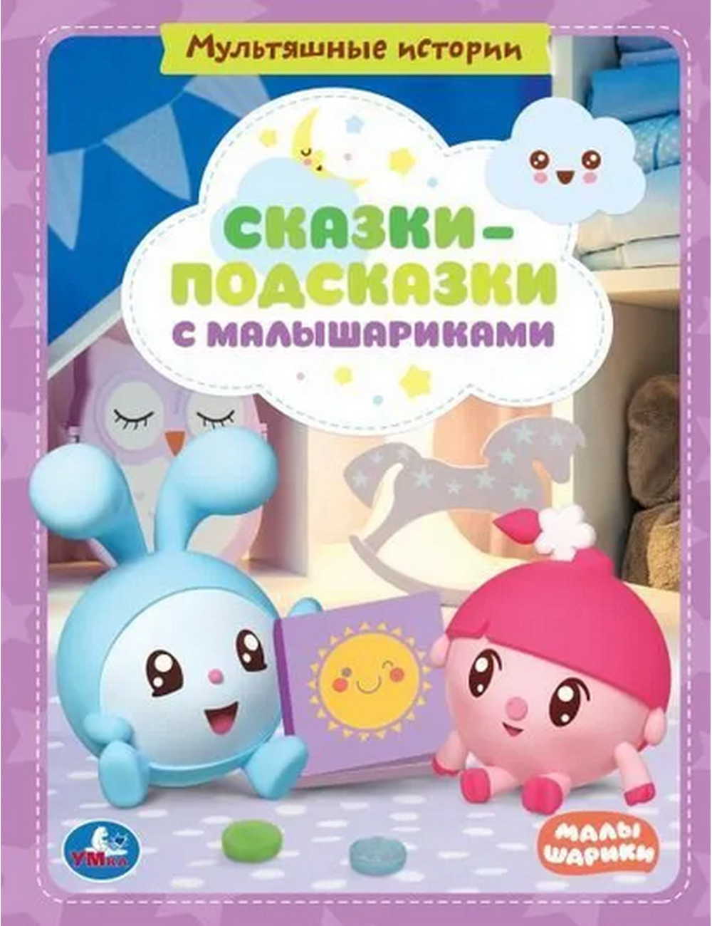 Книга с крупными буквами «Сказки-подсказки с Малышариками» ТМ «УМка» непременно понравится маленькому поклоннику мультсериала «Малышарики»: