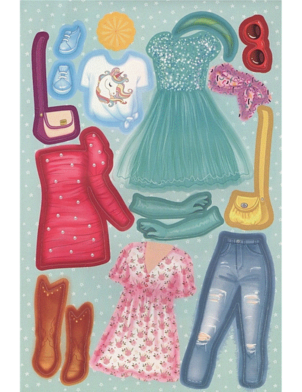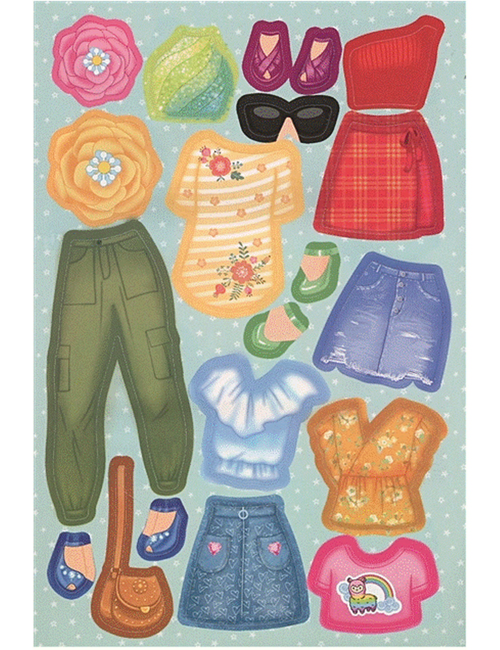 Перед тобой большой выбор наклеек с предметами одежды и обуви.