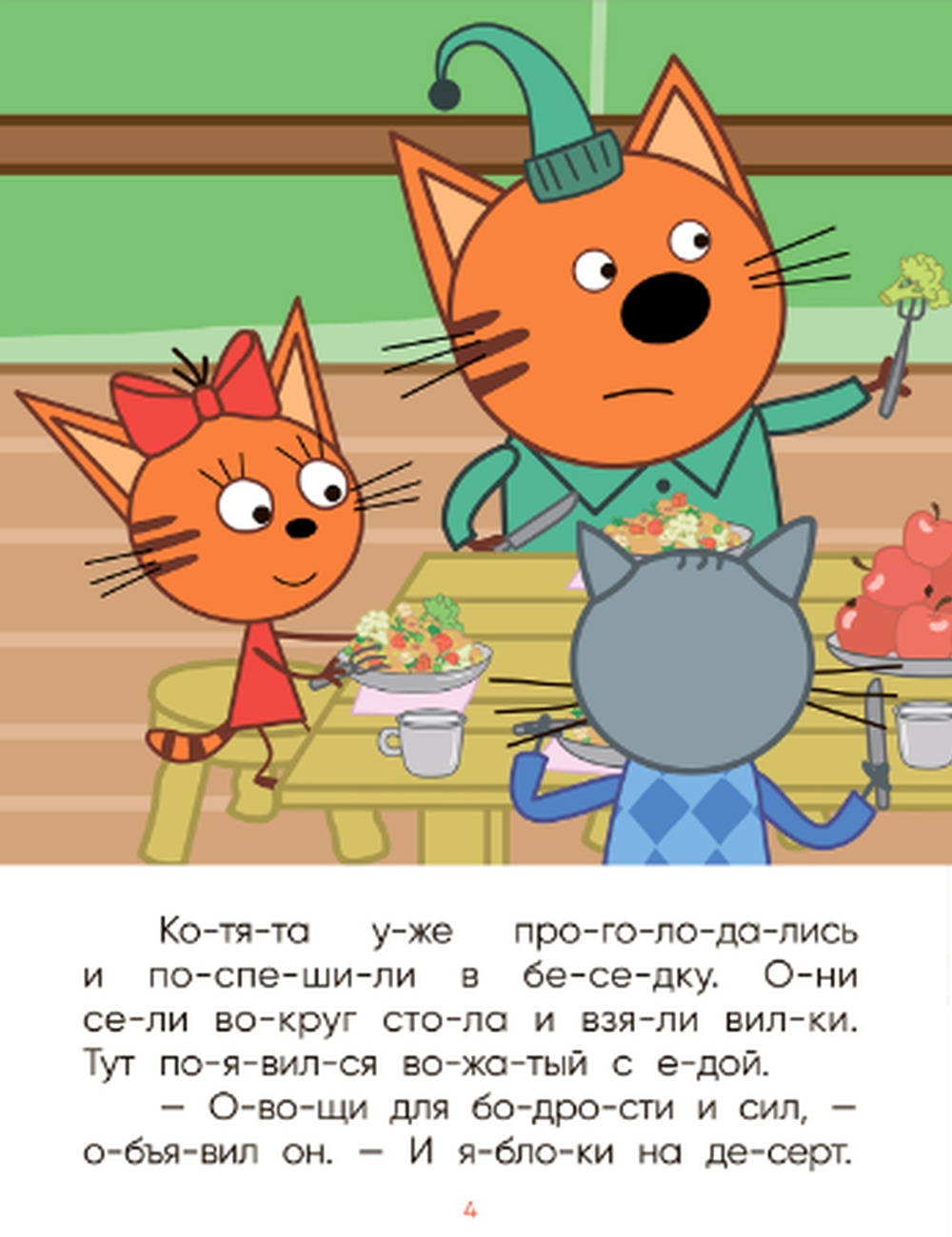 Что делать, если ребенок учится читать, а все сказки и стихи уже зачитаны до дыр? На помощь придет книга «Лесные котики» из серии «Три кота. Читаю по слогам» — история по мотивам любимого мультфильма. Слова, разделенные на фонетические слоги, крупный шрифт, понятные тексты и яркие иллюстрации — все в этой книге предусмотрено для того, чтобы читать по слогам ребенку было легко и интересно. Удобный формат книг позволит наслаждаться чтением не только дома, но и на прогулке, в пути или в очереди. Из книги «Лесные котики» ребенок узнает, как котята отправились в лесной лагерь и научились быть самостоятельными.