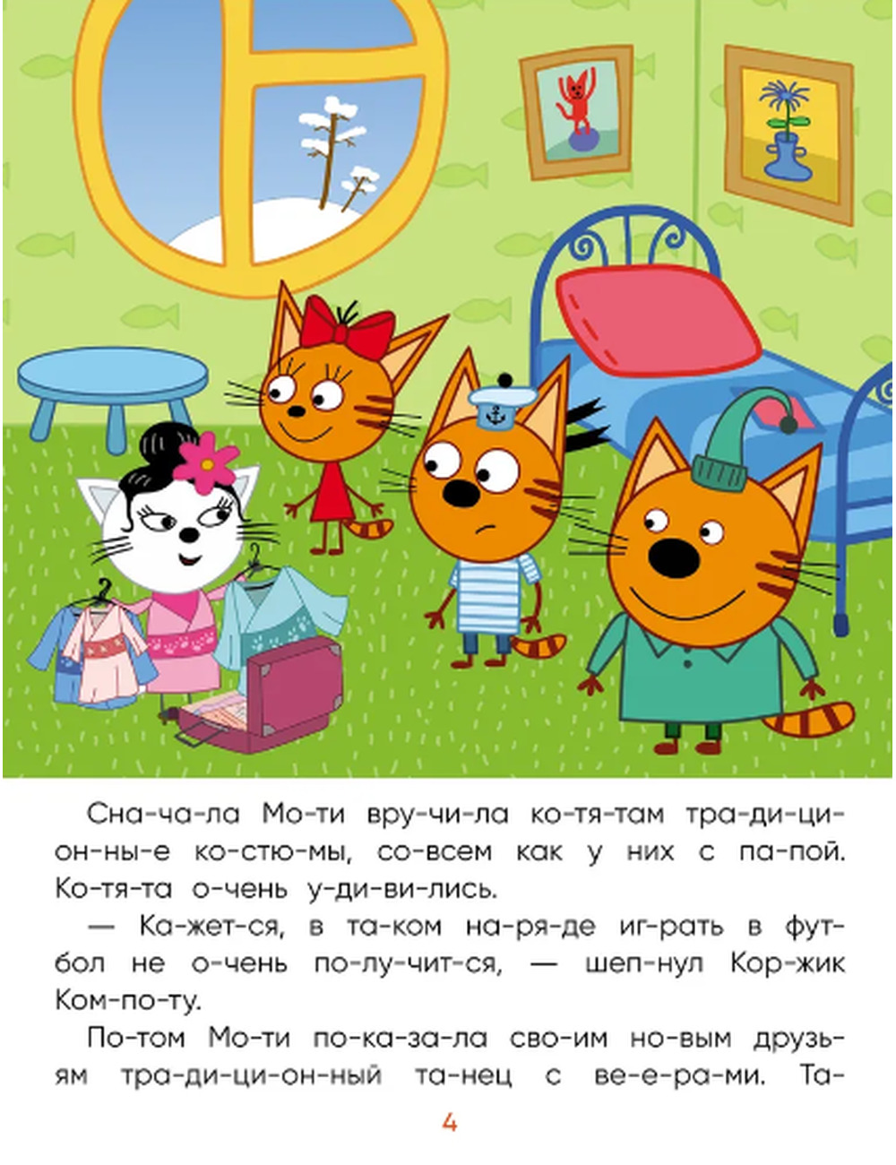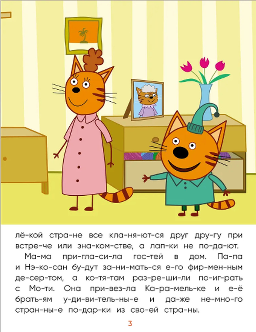 Ребенок уже знает буквы и пробует читать самостоятельно? Тогда отличным выбором для него станет книга «Заморские гости» из серии «Три кота. Читаю сам». В ней котятам предстоит встреча с гостями из далекой страны. История написана по мотивам серии мультфильма. Малышу будет нетрудно начать читать самостоятельно — в книге крупный шрифт, слова поделены на слоги, увлекательную историю сопровождают иллюстрации на каждой странице. А удобный формат позволит взять книжку в детский сад, в дорогу или на прогулку и насладиться чтением.