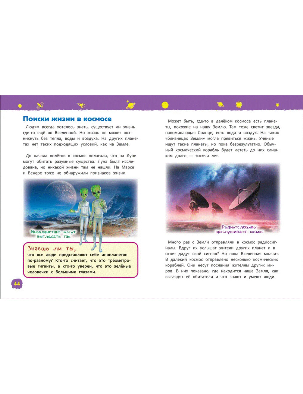 Эта увлекательная и легко написанная энциклопедия для дошкольников содержит множество фактов о Вселенной, планетах, звездах и историю освоения космоса. Книга поможет ребенку 4-6 лет развить кругозор и изучить окружающий мир.